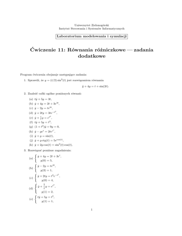 Ćwiczenie 11: Równania różniczkowe — zadania dodatkowe