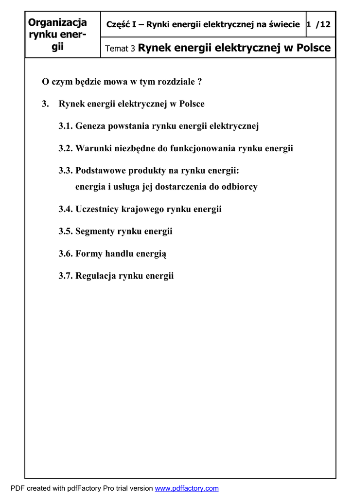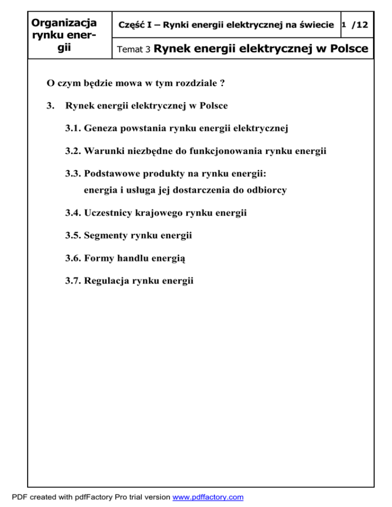 Temat 3 Rynek energii elektrycznej w Polsce