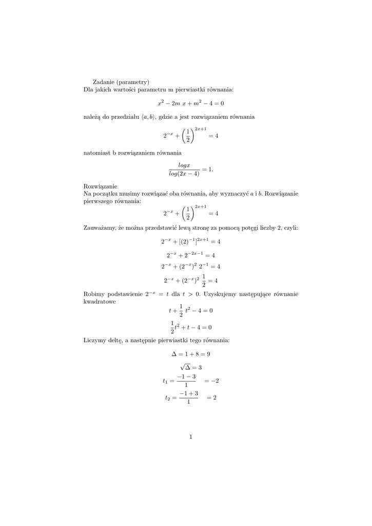 Zadanie (parametry) Dla jakich wartości parametru m pierwiastki
