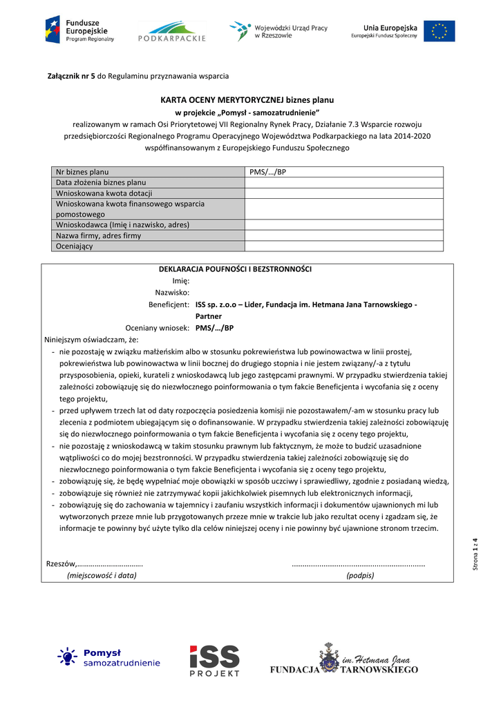 KARTA OCENY MERYTORYCZNEJ biznes planu