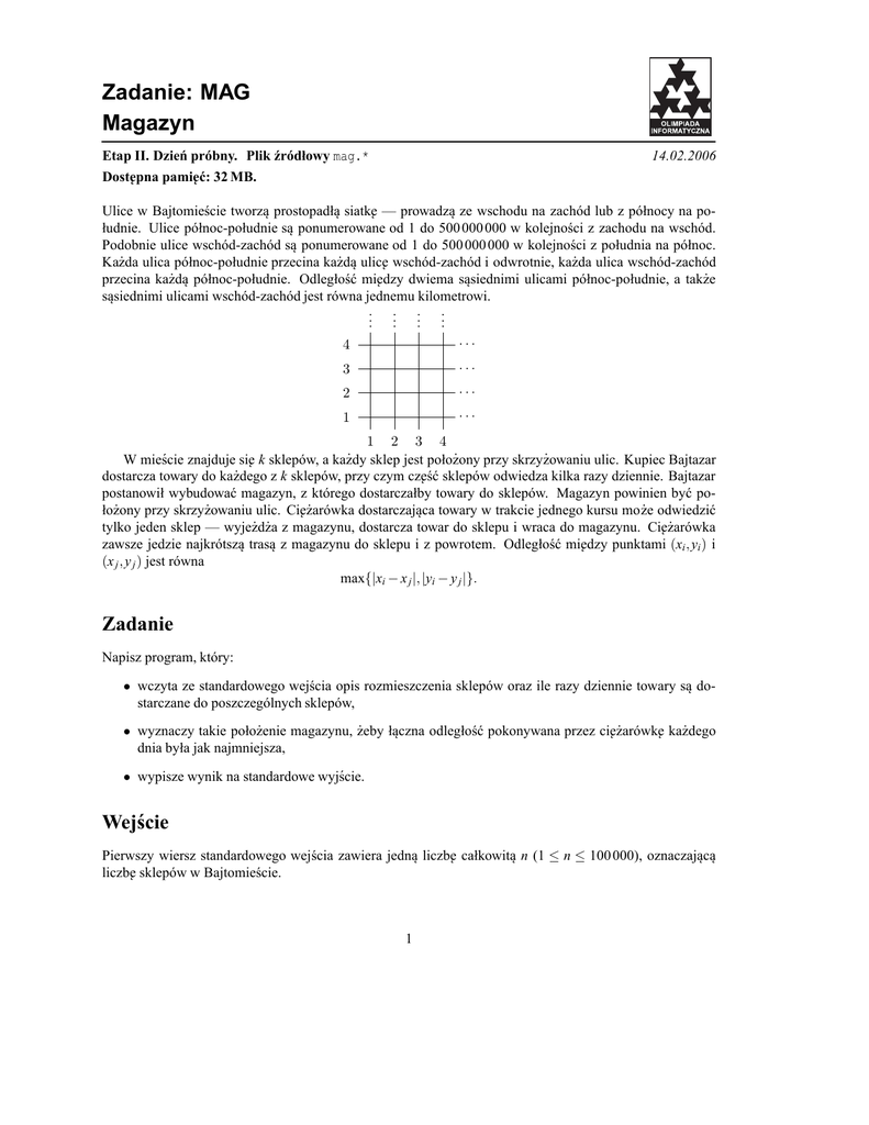 postanowił wybudować magazyn, z którego dostarczałby towary do sklepów. Magazyn powinien być położony przy skrzyżowaniu ulic. Ci˛eżarówka dostarczajaca