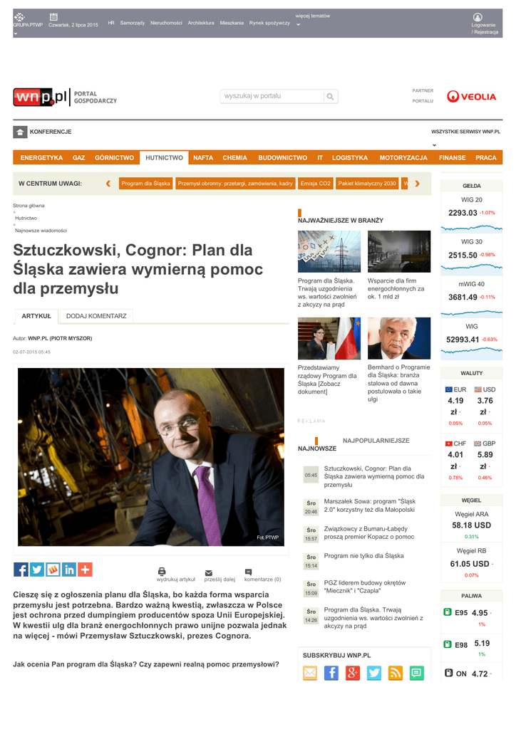 GRUPA PTWP Czwartek, 2 lipca 2015 więcej tematów HR Samorządy Nieruchomości Architektura Mieszkania Rynek spożywczy Logowanie / Rejestracja PARTNER wyszukaj w portalu KONFERENCJE ENERGETYKA PORTALU WSZYSTKIE SERWISY WNP.PL GAZ W CENTRUM UWAGI: GÓRNICTWO HUTNICTWO Program dla Śląska NAFTA CHEMIA BUDOWNICTWO Przemysł obronny: przetargi, zamówienia, kadry IT LOGISTYKA Emisja CO2 MOTORYZACJA Pakiet klimatyczny 2030 FINANSE Wydarzenia w KGHM PRACA GIEŁDA WIG 20 Strona główna » Hutnictwo » Najnowsze wiadomości 2293.03 -1.07% NAJWAŻNIEJSZE W BRANŻY Sztuczkowski, Cognor: Plan dla Śląska zawiera wymierną pomoc dla przemysłu ARTYKUŁ WIG 30 2515.50 -0.98% Program dla Śląska. Trwają uzgodnienia ws. wartości zwolnień z akcyzy na prąd DODAJ KOMENTARZ Wsparcie dla firm energochłonnych za ok. 1 mld zł mWIG 40 3681.49 -0.11% WIG Autor: WNP.PL (PIOTR MYSZOR) 52993.41 -0.63% 02-07-2015 05:45 Przedstawiamy rządowy Program dla Śląska [Zobacz dokument] Bernhard o Programie dla Śląska: branża stalowa od dawna postulowała o takie ulgi NAJPOPULARNIEJSZE NAJNOWSZE 05:45 Śro 20:46 Śro Fot. PTWP 15:57 Śro Sztuczkowski, Cognor: Plan dla Śląska zawiera wymierną pomoc dla przemysłu Marszałek Sowa: program "Śląsk 2.0" korzystny też dla Małopolski Związkowcy z Bumaru-Łabędy proszą premier Kopacz o pomoc Program nie tylko dla Śląska prześlij dalej USD 3.76 zł - 0.05% 0.05% CHF GBP 4.01 zł - 5.89 zł - 0.78% 0.46% WĘGIEL Węgiel ARA 58.18 USD 0.31% Węgiel RB 0.07% komentarze (0) Śro Cieszę się z ogłoszenia planu dla Śląska, bo każda forma wsparcia przemysłu jest potrzebna. Bardzo ważną kwestią, zwłaszcza w Polsce jest ochrona przed dumpingiem producentów spoza Unii Europejskiej. W kwestii ulg dla branż energochłonnych prawo unijne pozwala jednak na więcej - mówi Przemysław Sztuczkowski, prezes Cognora. EUR 4.19 zł - 61.05 USD - 15:14 wydrukuj artykuł WALUTY 15:09 Śro 14:26 PGZ liderem budowy okrętów "Miecznik" i "Czapla" Program dla Śląska. Trwają uzgodnienia ws. wartości zwolnień z akcyzy na prąd PALIWA E95 4.95 1% E98 5.19 SUBSKRYBUJ WNP.PL 1% Jak ocenia Pan program dla Śląska? Czy zapewni realną pomoc przemysłowi? ON 4.72 - ZOBACZ TAKŻE - Samo powstanie tego planu już jest pozytywne. Jakikolwiek krok zrobiony w kierunku poprawy trudniej sytuacji przemysłu ciężkiego, w tym hutnictwa, jest pożądany. Przychodzi po wielu latach negocjacji i próśb. 3% NEWSLETTER ZAPISZ Podaj adres e-mail LPG 1.88 2% Najważniejsze informacje portalu wnp.pl prosto do Twojej skrzynki pocztowej ROPA Ropa Brent Wybierz katalog Dla hutnictwa wymierną pomocą są zwłaszcza 3 - 4 elementy związane z cenami energii. Fundamentalne są ulgi w podatku akcyzowym. Na razie nie możemy Marszałek Sowa: program "Śląsk jednak jeszcze powiedzieć, że dostaliśmy dużo. 2.0" korzystny też dla Małopolski Kilkukrotnie już we wcześniejszych wypowiedziach przytaczałem przykład Niemiec, gdzie metalurgia jest Związkowcy z Bumaru-Łabędy proszą premier Kopacz o pomoc zwolniona nie tylko z akcyzy, ale także z opłaty przesyłowej, która jest dwu lub nawet trzykrotnie wyższa Program nie tylko dla Śląska niż akcyza. Teoretycznie polskie prawo energetyczne także przewiduje taką możliwość, ale jest ona obłożona takimi obostrzeniami, że w praktyce to niemal martwy przepis. Zaledwie kilka największych firm, takich jak KGHM, jest w stanie z tej ulgi skorzystać. W Niemczech korzystają z tego wszystkie huty. Plan jest pierwszym krokiem. Czas na kolejne. Jan Chojnacki, szef Siltechu: Program dla Śląska? Na pokaz, zbyt późno 62.01 USD - WYSZUKIWARKI OFERTY PRACY 35 382 ofert w bazie Zawód: stanowisko 1.98% Ropa WTI 58.33 USD 2.18% Branża: Wszystkie kategorie Region: Ropa Ural 57.03 USD 0% Oferty ze wszystkich regionów Wszystkie oferty 24h 7 dni WYSZUKAJ INDEKS CEN STALI PUDS Stal HEB200 min 2189 PLN 0.09% Diabeł tkwi w szczegółach, więc dopiero w przyszłości da się ocenić ich praktyczne znaczenie, ale interesująco wygląda szereg przewidzianych w planie programów finansowych - dedykowane, strukturalne fundusze inwestycyjne, możliwość emisji i obejmowania obligacji przez instytucje państwowe czy dofinansowanie stażów. Same zapisy są bardzo ciekawe, ale nie wiadomo jeszcze na ile będą to przydatne rozwiązania, na ile zostanie im zapewniony odpowiedni poziom finansowania. POLECANE OFERTY Stal HEB200 maks TECHNIK UTRZYMANIA RUCHUprodukcja/przemysł lekki 2319 PLN 0.22% ManpowerGroup Sp. z o.o. Stal St3S min. 1909 PLN 0.85% Stal St3S maks. 2054 PLN 1.13% Stal pręt fi12 min. 1800 PLN 0.33% Część działań przewidzianych w planie postulowaliście już dawno, rozmawiając z rządem na temat planu Tajaniego... Stal pręt fi12 maks. 1954 PLN 1.24% WIĘCEJ Węgiel KW SA - Wówczas jednak niczego nie udało się załatwić. Opór ministra finansów przed zwolnieniami z akcyzy był bardzo duży. Przy czym pamiętajmy, że te nasze postulaty są zgodne z przepisami Unii Europejskiej i wiele krajów z takich rozwiązań korzysta. Węgiel KHW SA KOMENTARZE Jaką wagę mają zapisy przewidujące ochronę własnego rynku przed nieuczciwą konkurencją? - To niezwykle ważna rzecz w sytuacji mocnego atakowania rynku przez stal importowaną z krajów, gdzie producenci nie muszą ponosić coraz wyższych kosztów unijnej polityki klimatycznej. Pamiętajmy, że jesteśmy państwem granicznym. Francuzi czy Hiszpanie nie odczuwają tak mocnej presji ze strony firm białoruskich czy rosyjskich. U nas ta stal pojawia się w tysiącach ton. Czy nie obawia się Pan, że w razie ewentualnej zmiany rządu cały program trafi do kosza? - Myślę, że gdyby tak się miało stać, to tylko dlatego, że nowy rząd chciałby od razu przedstawić i zrealizować plan jeszcze lepszy. Nie wyobrażam sobie, żeby w razie przegrania wyborów przez Platformę Obywatelską jej następcy, kimkolwiek będą, nie zrealizowali tego planu. 24 Przedstawiamy rzą