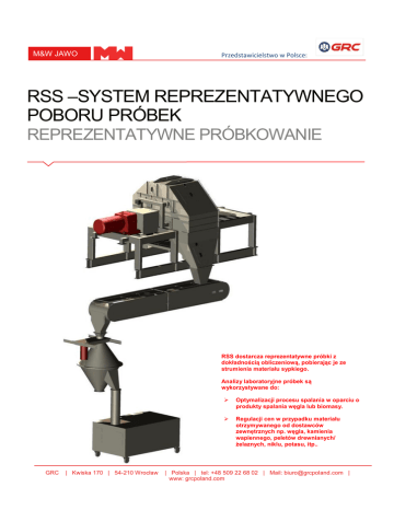 M&W JAWO HANDLING Przedstawicielstwo w Polsce: RSS –SYSTEM REPREZENTATYWNEGO POBORU PRÓBEK REPREZENTATYWNE PRÓBKOWANIE RSS dostarcza reprezentatywne próbki z dokładnością obliczeniową, pobierając je ze strumienia materiału sypkiego. Analizy laboratoryjne próbek są wykorzystywane do: GRC | Kwiska 170 | 54-210 Wrocław Optymalizacji procesu spalania w oparciu o produkty spalania węgla lub biomasy. Regulacji cen w przypadku materiału otrzymywanego od dostawców zewnętrznych np. węgla, kamienia wapiennego, peletów drewnianych/ żelaznych, niklu, potasu, itp.. | Polska | tel: +48 509 22 68 02 | Mail: [email protected] | www: grcpoland.com M&W JAWO HANDLING Przedstawicielstwo w Polsce: OPIS OGÓLNY TYPOWY SCHEMAT TECHNOLOGICZNY Wiedza o właściwościach węgla surowego: Wartość opałowa Zawartość wilgoci Twardość (Indeks Hardgrove’a) Zawartość N Zawartość S Zawartość popiołu ma zasadnicze znaczenie przy optymalizacji procesu spalania w elektrowniach węglowych. Właściwości te są identyfikowane poprzez pobór próbek reprezentatywnych z każdej partii węgla spalanego w elektrowni. System próbkowania węgla surowego jest integralną częścią systemu sterowania i jest on dostępny dla operatorów elektrowni. System próbkowania zapewnia operatorowi środki do pobierania i przygotowywania próbek reprezentatywnych węgla. Rozmiar próbki jest odpowiedni do wykonywania analizy laboratoryjnej. System próbkowania węgla surowego działa zgodnie z przyjętymi normami międzynarodowymi. 1. Główny przenośnik taśmowy Wyniki badań laboratoryjnych wykonywanych w oparciu o 2. Poprzeczny kubełkowy próbopobierak taśmowy (CBBS) 3. Przenośnik dozujący (DC) reprezentatywne próbki, przygotowane przez system 4. Kruszarka dwuwalcowa (VK) pobierania próbek stosuje się do: 5. Obrotowy rozdzielacz rurowy (PD) Obliczanie płatności należnych za każdą partię 7. Zbiornik buforowy dostarczonego węgla. 8. Przenośnik dozujący (DC) Regulacja podawania węgla do młynów. Obliczanie ilości produktów ubocznych od każdej partii. Obliczanie emisji dla każdej partii węgla. GRC | Kwiska 170 | 54-210 Wrocław 6. Klapa przestawna 9. Obrotowy rozdzielacz rurowy (PD) 10. Pojemniki na próbki 11. Przenośnik odpadów (RC) | Polska | tel: +48 509 22 68 02 | Mail: [email protected] | www: grcpoland.com M&W JAWO HANDLING Przedstawicielstwo w Polsce: SAMPLING SCHEDULE FOR COAL EQUIPMENT SIZING CONSIDERATIONS W celu zbadania właściwości węgla dla danej partii węgla należy pobrać liczbę u jednostek próbek. Liczba ta zależy od masy partii oraz pożądanej, ogólnej dokładności próby. Minimalne wymagania są wymienione w tabeli 1. Masę każdej pierwotnej próbki cząstkowej można obliczyć za pomocą Równania 4, gdzie: Każda próbka jednostkowa jest pobierana przez urządzenie do pobierania próbek w ilości n próbek cząstkowych, gdzie liczba n powinna wynosić 10 lub więcej. Właściwości partii węgla można określić z ogólną dokładnością PL za pomocą równania 1, w którym: VPT jest błędem przygotowania próbek i badania. Jeżeli brakuje danych należy założyć 0.2 VI jest błędem pierwotnej próbki cząstkowej. Jeżeli brakuje danych należy założyć 20 Ogólna dokładność jest funkcją liczby jednostek próbkowania u, niedokładności przygotowania i badania próbki VPT, liczby próbek cząstkowych oraz niedokładności objętości próbek cząstkowych VI. Jeśli dana dokładność PL jest wymagana wówczas liczba próbek cząstkowych n oraz liczba jednostek próbkowania u może zostać określona odpowiednio za pomocą Równań 2 i 3. Wartości n i u są zaokrąglane w górę i przeliczane na wygodne wielkość z zachowaniem wymaganych wartości minimalnych. Równanie 1: C jest wydajnością w [t/h] przenośnika taśmowego. A jest szerokością poboru próbki w [mm]. Powinna wynosić ≥ 3 razy nominalnego rozmiaru największych ziaren węgla. S jest prędkością element pobierającego [m/s]. Jeżeli S jest stała wówczas masa próbki cząstkowej jest funkcją wydajności C, nominalnego rozmiaru największych brył węgla oraz szerokości cięcia próbki A. Zalecane jest dla układu systemów próbkowania aby referencyjne masy próbki cząstkowej z tabeli 2 były wykorzystywane jako wartości minimalne. Całkowita masa próbki (jednostki próbkowania) wynosi co najmniej n razy masy próbek cząstkowych, gdzie n wynosi co najmniej 10, jak podano wcześniej. Podział próbki W celu uzyskania poręcznej masy próbki, próbka jest dzielona na pewną liczbę mniejszych, lecz statystycznie identycznych próbek, a reszta jest z powrotem zawracana na przenośnik węgla. Z poprzedniego rozdziału wynika, że zmniejszenie masy wymaga zmniejszenia wielkości cząstek, w celu zachowania reprezentatywności próbki. Z tego powodu system pobierania reprezentatywnych próbek węgla składa się z urządzeń do wieloetapowej ekstrakcji, redukcji wielkości cząstek oraz podziału próbki. Równanie 4: Równanie 2: Równanie 3: Masa partii w tonach < 5.000 5.001 20.000 20.001 45.000 45.001 80.000 80.001 - 125.000 125.001 - 180.000 180.001 - 245.000 GRC Liczba jednostek próbkowania 1 2 3 4 5 6 7 | Kwiska 170 | 54-210 Wrocław Nominalny rozmiar największych ziaren węgla [mm] 300 200 150 125 90 63 45 31,5 22,4 16 11,2 8 Referencyjna masa próbek cząstkowych [kg] 100 25 15 10 5 3 2 1 0,75 0,50 0,25 0,15 | Polska | tel: +48 509 22 68 02 | Mail: [email protected] | www: grcpoland.com M&W JAWO HANDLING Przedstawicielstwo w Polsce: Poprzeczny kubełkowy próbopobierak taśmowy Obrotowy rozdzielacz rurowy (klapa z napędem) Kruszarka dwuwalcowa Odbiornik próbek (pyłoszczelny) M&W JAWO HANDLING jest międzynarodową firmą inżynierską, specjalizującą się w projektowaniu, produkcji i dostarczaniu pojedynczych urządzeń i instalacji do poboru reprezentatywnych próbek materiałów sypkich I masowych. Setki dostarczonych przez nas instalacji z powo