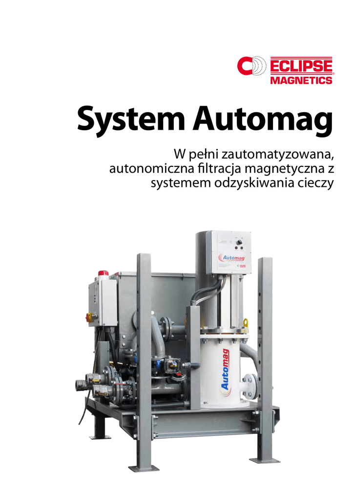 System Automag W pełni zautomatyzowana, autonomiczna filtracja magnetyczna z systemem odzyskiwania cieczy System Automag Redukcja kosztów System Automag to autonomiczny, wolnostojący system filtracji magnetycznej zapewniający nieprzerwaną filtrację magnetyczną. System może być zamocowany w linii przepływu lub, przy zastosowaniu opcjonalnej wbudowanej pompy, poza nią. Zgłoszony do opatentowania samooczyszczający się filtr magnetyczny* usuwa zanieczyszczenia magnetyczne i paramagnetyczne o rozmiarze poniżej mikrona z płynów chłodzących i substancji smarujących. Filtr zatrzymuje zanieczyszczenia aż do ich uwolnienia podczas zautomatyzowanego procesu oczyszczania. Proces ten powoduje krótkotrwałe przekierowanie cieczy czyszczącej filtr w taki sposób, że ciecz przenosi wszystkie zanieczyszczenia do zbiornika buforowego. Ciecz jest następnie spowalniana i przekazywana na rolkę do czyszczenia chłodziwa. Ciecz z czyszczenia jest silnie zanieczyszczona. Natężenie przepływu cieczy oraz wysokie natężenie pola magnetycznego rolki zapewniają, że usuwanie zanieczyszczeń jest wyjątkowo skuteczne. Oczyszczona ciecz powraca następnie do obiegu; zanieczyszczenia są zgarniane z rolki i gromadzone do utylizacji lub recyklingu. ■■ Wydłużenie okresu eksploatacji pozostałych filtrów ■■ Zwiększenie dokładności obrabiania el ementów ■■ Lepsze wykończenie elementu obrabianego Mniejsze zużycie mechaniczne urządzeń Zastosowania ■■ szlifowanie, ■■ gładzenie, ■■ frezowanie, ■■ precyzyjna obróbka wykończeniowa. Podczas pracy Zanieczyszczona ciecz przedostaje się do wlotu, gdzie jest rozpraszana do pierwszej komory filtrującej. Ciecz przechodzi przez rdzenie magnetyczne z pierwiastkami ziem rzadkich o dużym natężeniu pola, gdzie następuje usunięcie cząstek zanieczyszczeń. Ciecz jest spowalniana i przedostaje się do drugiej komory filtrującej, gdzie odbywa się jej dalsza filtracja. Proces oczyszczania filtra jest całkowicie zautomatyzowany. Rdzenie są podnoszone z tulei i następuje przełączenie zaworu oczyszczania filtra. Ciecz jest pompowana przez filtr, wymywając zanieczyszczenie z tulei ze stali nierdzewnej i przenosząc je do zbiornika buforowego. Wydłużenie okresu eksploatacji płynów ■■ * Zespoły mogą być wyposażone w filtr pojedynczy lub filtry podwójne umożliwiające pracę dwukierunkową. Zanieczyszczenia pozostają przyczepione do tulei ze stali nierdzewnej mocujących rdzenie. Przefiltrowana ciecz wydostaje się przez złącze wyjściowe. ■■ Mniej obsługi technicznej Magnetyczna rolka do czyszczenia chłodziwa usuwa zanieczyszczenia z płynu, zwracając oczyszczoną ciecz z powrotem do obiegu. Zanieczyszczenia są oddzielane w postaci umożliwiającej ich usunięcie lub recykling. z Wyeliminowanie kosztów utylizacji Wyższa jakość Zbiornik buforowy podaje zanieczyszczoną ciecz na rolkę o dużym natężeniu pola magnetycznego. SPOSÓB DZIAŁANIA ■■ pierwsza komora filtrująca druga komora filtrująca tuleje ze stali nierdzewnej rdzenie magnetyczne zanieczyszczenie osad zawór oczyszczania filtra Zanieczyszczenia są przyciągane do tulei rdzeni. Oczyszczona ciecz powraca do obiegu technologicznego. Filtr magnetyczny Automag 2-stopniowy filtr magnetyczny, usuwa zanieczyszczenia o rozmiarach nawet poniżej mikrona. Zautomatyzowany proces czyszczenia Zbiornik buforowy Stanowi miejsce zatrzymania cieczy wraz z zanieczyszczeniami przed jej podaniem do magnetycznej rolki do oczyszczania chłodziwa Rolka magnetyczna do chłodziwa Oddziela zanieczyszczenia od cieczy użytej podczas oczyszczania. Oczyszczona ciecz jest podawana z powrotem do obiegu. Zanieczyszczenia są usuwane w postaci półsuchego plastra, który można poddać później recyklingowi Zawór rozdzielczy Automatycznie przełączany w trakcie procesu oczyszczania filtra, co umożliwia przesłanie cieczy wraz z zanieczyszczeniami do zbiornika buforowego Zdjęcia przedstawiają zespół pracujący poza linią przepływu cieczy z wbudowaną pompą Oczyszczanie filtra Odzyskiwanie cieczy powrót czystej cieczy do obiegu zanieczyszczona ciecz użyta do czyszczenia filtra Automag wchodzi do zbiornika buforowego zanieczyszczenia usuwane w celu utylizacji lub recyklingu uwolnione zanieczyszczenie do zbiornika buforowego Cykl czyszczenia: rdzenie magnetyczne są podnoszone z tulei i następuje otwarcie zaworu oczyszczania filtra. Następuje uwolnienie zanieczyszczeń i ich wypłukanie do zbiornika buforowego. Zanieczyszczona ciecz jest podawana ze zbiornika buforowego na rolkę magnetyczną do oczyszczania chłodziwa. Zanieczyszczenia są przyciągane do obracającej się rolki, pozostawiając czystą ciecz, która powraca do obiegu. Zanieczyszczenia są zdejmowane z rolki za pomocą skrobaka, gotowe do zebrania. Dane wyrobu Autonomiczna filtracja i system odzyskiwania cieczy umożliwiają zastosowanie przy większych wartościach przepływu i większym zanieczyszczeniu. Zautomatyzowana praca ciągła. Zespół filtra Automag Liczba rdzeni Przepływ maksymalny Filtracja w obrębie linii lub poza nią AM6 AM12 Praca w obrębie linii lub poza nią Automatyczny filtr z samoczynnym czyszczeniem (zasilany pneumatycznie) Magnetyczna rolka do chłodziwa umożliwia pełne odzyskiwanie cieczy wykorzystywanej w procesie czyszczenia Zakres temperatur: 5°C do 70°C (zespół filtra) 6 12 Zdolność zbierania zanieczyszczeń Maks. ciśnienie robocze l/min m³/godz. kg bar 450 900 27 54 7 14 10 10 Systemy mogą być dostarczane z dwoma filtrami, dla większych natężeń przepływu Wymiary w mm, o ile nie podano inaczej Numer produktu SZER. DŁ. WYS. D1 D2 D3 Kołnierze AM6/SKID1 AM12/SKID1 1000 1200 1200 1400 1300 1400 75 (3) 75 (3) 50 (2) 75 (3) 50 (2) 75 (3) PN16 PN16 DŁ WYS. SZER. ∅D1 ∅D2 ∅D3 Wykres przedstawia urządzenie w linii bez wbudowanej pompy Inne filtry Eclipse Magnetics ™ PATENTIERT Kompaktowy filtr magnetyczny ogólnego zas
