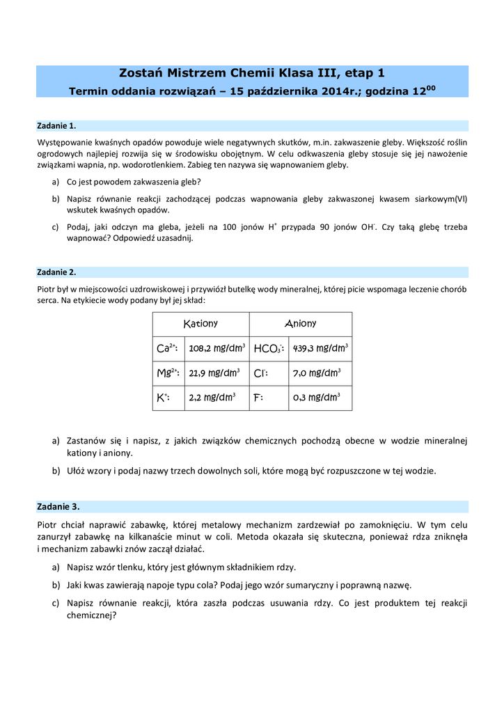 Zostań Mistrzem Chemii Klasa III, etap 1