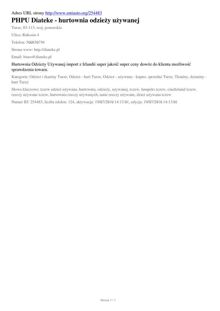 PHPU Diateke - hurtownia odziezy uzywanej, Turze