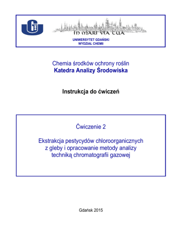 UNIWERSYTET GDAŃSKI WYDZIAŁ CHEMII Chemia środków ochrony roślin Katedra Analizy Środowiska Instrukcja do ćwiczeń Ćwiczenie 2 Ekstrakcja pestycydów chloroorganicznych z gleby i opracowanie metody analizy techniką chromatografii gazowej Gdańsk 2015 Ćwiczenie 2 Ekstrakcja pestycydów chloorganicznych z gleby 1. CZĘŚĆ TEORETYCZNA Techniki ekstrakcyjne są najczęściej stosowanymi metodami izolacji i wzbogacania analitów występujących w próbkach środowiskowych. Stosowane są one w analityce śladowych składników próbek gazowych, ciekłych oraz stałych w celu usunięcia substancji zanieczyszczających oraz osiągnięcia odpowiedniej granicy wykrywalności (LOD). Podczas procesu ekstrakcji następuje przeniesienie analitów z próbki (matrycy pierwotnej) do matrycy odbierającej (tzw. wtórnej), która ma zazwyczaj prosty, ściśle zdefiniowany skład chemiczny. Wprowadzenie etapu ekstrakcji do procedury analitycznej daje zazwyczaj następujące korzyści: • przeniesienie analitów do matrycy o znacznie prostszym niż matryca pierwotna i jednocześnie jednoznacznie określonym składzie chemicznym, najczęściej bardziej odpowiedniej do oznaczeń końcowych, • usunięcie składników przeszkadzających w analizie końcowej, • możliwość podniesienia stężenia analitów powyżej granicy oznaczalności stosowanej techniki i przyrządu pomiarowego. Należy jednak pamiętać, że proces ekstrakcji może prowadzić do straty pewnej części analitów i wprowadzać dodatkowe zanieczyszczenia próbki. Ekstrakcja zanieczyszczeń organicznych (np. węglowodorów aromatycznych i alifatycznych czy pestycydów) z gleby jest przykładem ekstrakcji próbek stałych. Proces ten może być realizowany na wiele sposobów, jak obrazuje Rysunek 1. Ekstrakcja cieczą jest podstawowym procesem wyodrębniania związków organicznych z próbek stałych. Polega ona na wybiórczym rozpuszczaniu substancji znajdującej się w stałej próbce w określonym rozpuszczalniku. Obecnie stosowane techniki ekstrakcji próbek stałych cieczą dzielą się na trzy zasadnicze grupy (patrz też Tabela 1): Rysunek 1. Klasyfikacja technik ekstrakcji z próbek stałych (J. Namieśnik, Z. Jamrógiewicz, M. Pilarczyk, L. Torres, Przygotowanie próbek środowiskowych do analiz, WNT, Warszawa, 2000). 2 Ćwiczenie 2 Ekstrakcja pestycydów chloorganicznych z gleby • Techniki klasyczne, do których zaliczamy: ekstrakcję rozpuszczalnikiem z wytrząsaniem, ekstrakcję za pomocą strumienia rozpuszczalnika, saponifikację, ekstrakcję w aparacie Soxhleta oraz homogenizację próbki z rozpuszczalnikiem; • Nowoczesne techniki z wykorzystaniem dodatkowych czynników do wspomagania ekstrakcji (ultradźwięki czy promieniowanie mikrofalowe). Do tej grupy technik ekstrakcji należy sonikacja, przyśpieszona ekstrakcja z pomocą rozpuszczalnika (ASE), ekstrakcja za pomocą rozpuszczalnika pod zwiększonym ciśnieniem (MPLE), ekstrakcja z pomocą rozpuszczalnika wspomagana promieniowaniem mikrofalowym (MAE); • Techniki, w których wykorzystuje się płyny w stanie nadkrytycznym (SFE). Tabela 1. Porównanie różnych technik ekstrakcji z wykorzystaniem rozpuszczalników ze względu na czas trwania procesu i ilość zużywanych rozpuszczalników (J. Namieśnik, Z. Jamrógiewicz, M. Pilarczyk, L. Torres Przygotowanie próbek środowiskowych do analiz, WNT, Warszawa, 2000). Technika ekstrakcji Ekstrakcja w aparacie Soxhleta Ekstrakcja w zautomatyzowanym aparacie Soxhleta Ekstrakcja za pomocą rozpuszczalnika wspomaganego ultradźwiękami Ekstrakcja za pomocą rozpuszczalnika wspomaganego promieniowaniem mikrofalowym Przyśpieszona ekstrakcja za pomocą rozpuszczalnika Ekstrakcja za pomocą płynu w stanie nadkrytycznym Ilość zużytego rozpuszczalnika [ml] 200 – 500 50 – 100 Przeciętny czas trwania procesu ekstrakcji 4 – 48 h 1–4h 100 – 300 30 min – 1 h 25 – 50 30 min – 1 h 15 – 40 12 – 18 min 8 – 50 30 min – 2 h Pestycydy chloroorganiczne, stosowane na szeroką skalę w latach 1940-1970, należą do tzw. trwałych zanieczyszczeń organicznych (POPs, Persistent Organic Pollutants). Stanowią dziewięć spośród dwunastu zanieczyszczeń tego typu, zdefiniowanych przez Konwencję Sztokholmską, podpisaną w 2001 r. (weszła w życie trzy lata później). Ich wspólną cechą jest wysoka lipofilowość, duża trwałość w środowisku (nawet kilkadziesiąt lat) oraz zdolność do gromadzenia się w organizmach zwierzęcych (bioakumulacja) i przenoszenie wzdłuż łańcuchów pokarmowych (biomagnifikacja). Jednym z celów Konwencji jest eliminacja z użycia wszystkich pestycydów, ujętych w Tabeli 2. Wyjątkiem jest stosowanie DDT do zwalczania owadów przenoszących choroby; dodatkowo, pewne ilości heksachlorobenzenu powstają jako produkt uboczny niektórych procesów przemysłowych. Począwszy od roku 2009, lista POPs ulega rozszerzeniu na kolejne związki chemiczne. 3 Ćwiczenie 2 Ekstrakcja pestycydów chloorganicznych z gleby Tabela 2. Pestycydy, ujęte na liście trwałych zanieczyszczeń organicznych w 2001 roku, wg Konwencji Sztokholmskiej (zakres stosowania wg Amerykańskiej Agencji Ochrony Środowiska). Pestycyd Aldryna Dieldryna Cloran DDT Endryna Heptachlor Heksachlorobenzen Mirex Toksafen Zakres stosowania Insektycyd stosowany w uprawach kukurydzy i bawełny; zwalczanie termitów Insektycyd stosowany w wielu uprawach; zwalczanie termitów Insektycyd stosowany w wielu uprawach; zwalczanie owadów przenoszących choroby Insektycyd stosowany głównie w uprawach bawełny i zbóż; rodentocyd Insektycyd stosowany głównie do zwalczania owadów w glebie; także do zwalczania owadów przenoszących choroby Fungicyd; stosowany także w przemyśle chemicznym Insektycyd; stosowany także w przemyśle chemicznym Insektycyd o szerokim zakresie stosowania 4 Ćwiczenie 2 Ekstrakcja pestycydów chloorganicznych z gleby 2. WYKONANIE ĆWICZENIA 2.1 Cel ćwiczenia Celem ćwiczenia jest poró