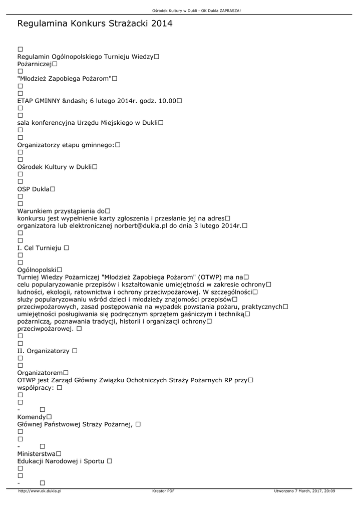 Regulamina Konkurs Stra acki 2014 - Ośrodek Kultury w Dukli