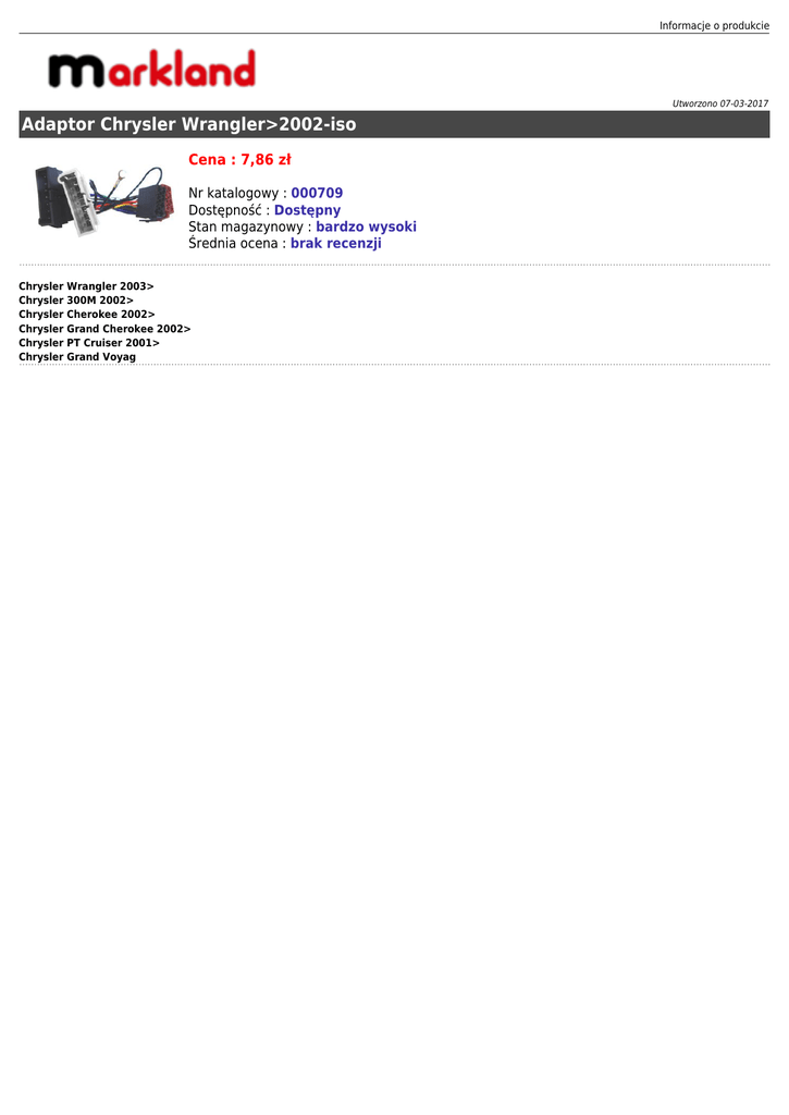 Informacje o produkcie Utworzono 07-03-2017 Adaptor Chrysler Wrangler>2002-iso Cena : 7,86 zł Nr katalogowy : 000709 Dostępność : Dostępny Stan magazynowy : bardzo wysoki Średnia ocena : brak recenzji Chrysler Chrysler Chrysler Chrysler Chrysler Chrysler Wrangler 2003> 300M 2002> Cherokee 2002> Grand Cherokee 2002> PT Cruiser 2001> Grand Voyag
