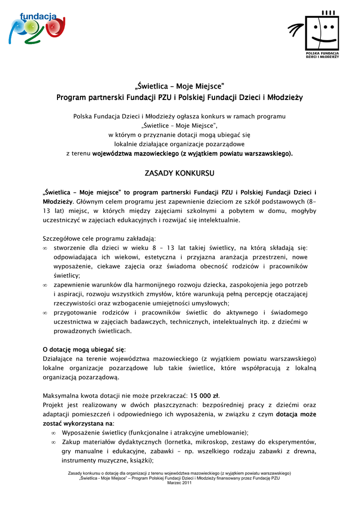 Zasady konkursu 2011 - Polska Fundacja Dzieci i Młodzieży