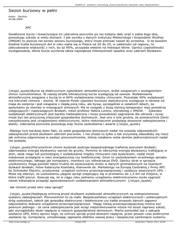 atesty. Uderzenia piorunów powodują więc liczne uszkodzenia i awarie.{/xtypo_quote}