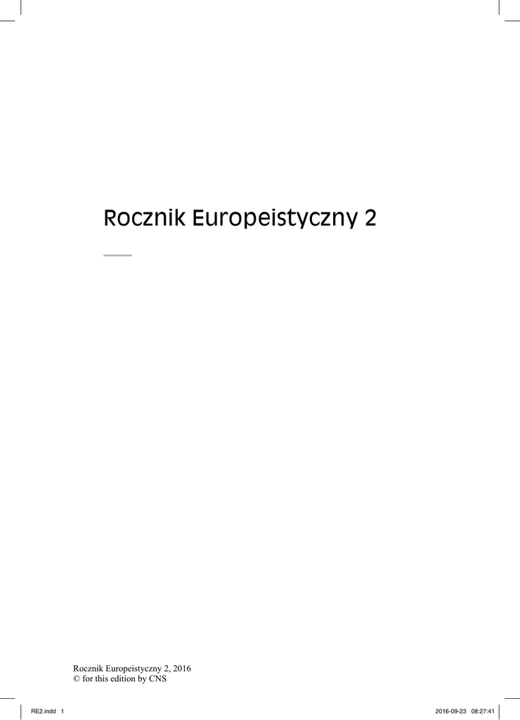 Rocznik Europeistyczny 2 Rocznik Europeistyczny 2, 2016 © for this edition by CNS RE2.indd 1 2016-09-23 08:27:41 Rocznik Europeistyczny 2, 2016 © for this edition by CNS RE2.indd 2 2016-09-23 08:27:43 Rocznik Europeistyczny 2 Pod redakcją Krystyny Rogaczewskiej Wydawnictwo Uniwersytetu Wrocławskiego 2016 Rocznik Europeistyczny 2, 2016 © for this edition by CNS RE2.indd 3 2016-09-23 08:27:43 Recenzenci Renata Duda, Wojciech Horyń, Krzysztof Kociubiński, Radosław Kupczyk, Magdalena Musiał-Karg, Aldona Wiktorska-Święcka, Barbara Wiśniewska-Paź Rada Naukowa Krystyna Rogaczewska — przew., Tomasz Grosse (Uniwersytet Warszawski), Konstanty Wojtaszczyk (Uniwersytet Warszawski), Zbigniew Czachór (Uniwersytet Poznański), ks. Jerzy Koperek (KUL), Ewa Pancer-Cybulska (Uniwersytet Ekonomiczny Wrocław), Ewa Małuszyńska (Uniwersytet Ekonomiczny Poznań), Wiesław Bokajło (Uniwersytet Wrocławski), Quentin Michel (Uniwersytet w Liege) Kolegium Redakcyjne Krystyna Rogaczewska — Redaktor Naczelny Paweł Turczyński — Sekretarz Redakcji © Copyright by Wydawnictwo Uniwersytetu Wrocławskiego Sp. z o.o., Wrocław 2016 ISSN: 2450-274X Ilustracja na okładce: © zentilia/123RF.com Publikacja przygotowana w Wydawnictwie Uniwersytetu Wrocławskiego Sp. z o.o. 50-137 Wrocław, pl. Uniwersytecki 15 tel. 71 3752885, e-mail: [email protected] Rocznik Europeistyczny 2, 2016 © for this edition by CNS RE2.indd 4 2016-09-23 08:27:43 Spis treści Wiesław Bokajło, Zamiast wstępu . . . . . . . . . . . . . . . . . . . . . . . . . . . . . . . . . . . . . . . . . . . . . . . . . 7 Zdzisław W. Puślecki, The financial instrument of the Innovation Union — Horizon 2020 25 Barbara Panciszko, Determinanty zadłużenia gospodarstw domowych w wybranych pań- stwach strefy euro . . . . . . . . . . . . . . . . . . . . . . . . . . . . . . . . . . . . . . . . . . . . . . . . . . . . . . . . . 39 Wojciech Bednarek, Unijna polityka migracyjna wobec obywateli państw Europy Wschod- niej — w stronę liberalizacji czy ograniczania swobody przypływu osób? . . . . . . . . . . 49 Katarzyna Dojwa-Turczyńska, Stosunek Polaków do migrantów. Refleksje socjologiczne w świetle wybranych badań empirycznych . . . . . . . . . . . . . . . . . . . . . . . . . . . . . . . . . . . . 61 Jakub Bornio, Kwestia Rzezi Wołyńskiej w kontekście kryzysu ukraińskiego — między ro- syjską propagandą, ukraińskim poszukiwaniem tożsamości narodowej a polską racją stanu . . . . . . . . . . . . . . . . . . . . . . . . . . . . . . . . . . . . . . . . . . . . . . . . . . . . . . . . . . . . . . . . . . . . 83 Filip Tereszkiewicz, Rola Unii Europejskiej na arenie międzynarodowej według partii eu- rosceptycznych — nowy wymiar wspólnoty? . . . . . . . . . . . . . . . . . . . . . . . . . . . . . . . . . . 101 Beata Przybylska-Maszner, Europejski Fundusz na rzecz Demokracji — założenia, możli- wości, wyzwania . . . . . . . . . . . . . . . . . . . . . . . . . . . . . . . . . . . . . . . . . . . . . . . . . . . . . . . . . . 119 Marta Rojewska, Federacja europejska — projekt polityczny czy utopia? . . . . . . . . . . . . . . . . 135 Joanna Grzela, Meandry norweskiej europejskości . . . . . . . . . . . . . . . . . . . . . . . . . . . . . . . . . . . 149 Tomasz Grzegorz Grosse, The European Parliament and the negotiation of the Multian- nual Financial Framework . . . . . . . . . . . . . . . . . . . . . . . . . . . . . . . . . . . . . . . . . . . . . . . . . . 167 Radosław Jakubowski, Rola kategorii równości w modelu społecznych relacji komunika- cyjnych Jürgena Habermasa . . . . . . . . . . . . . . . . . . . . . . . . . . . . . . . . . . . . . . . . . . . . . . . . 187 Noty o autorach . . . . . . . . . . . . . . . . . . . . . . . . . . . . . . . . . . . . . . . . . . . . . . . . . . . . . . . . . . . . . . . . 197 Rocznik Europeistyczny 2, 2016 © for this edition by CNS RE2.indd 5 2016-09-23 08:27:43