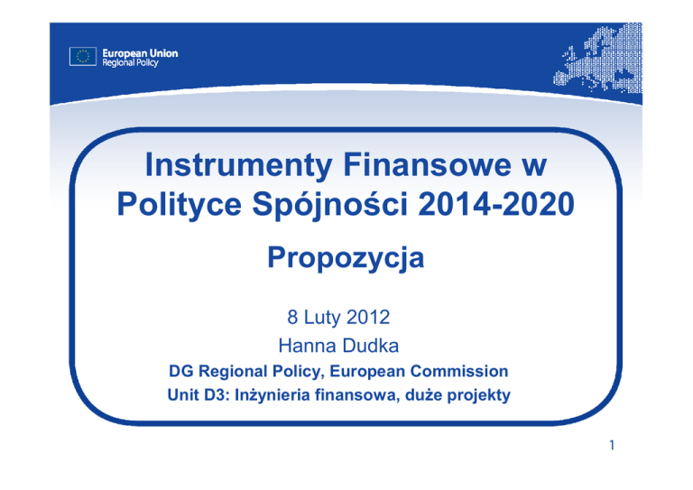 Instrumenty Finansowe w Polityce Spójności 2014-2020 Propozycja 8 Luty 2012 Hanna Dudka DG Regional Policy, European Commission Unit D3: Inżynieria finansowa, duże projekty 1 Instrumenty finansowe PS 2014-2020: Wstęp Wzrost znaczenia instrumentów finansowych we wdrażaniu polityki spójności: 1994-1999: EUR 0.57 mld (0.44% funduszy) 2000-2006: EUR 1.2 mld (0.80% funduszy) 2007-2013: ?? 31.12.2010 – EUR 10 mld ulokowane w funduszach 2 Instrumenty finansowe PS 2014-2020 Propozycja prawna Komisji 2014-2020 jasne zasady oparte na istniejących interpretacjach i wytycznych łączenie i synergie z innymi formami wsparcia zgodność (kompatybilność) z instrumentami finansowymi ustanowionymi na poziomie Unii 3 Instrumenty finansowe PS 2014-2020 Operacja Definicje • Składa się z wkładów finansowych z Managing Authority programu do instrumentów finansowych oraz z późniejszego wsparcia finansowego świadczonego przez te instrumenty finansowe Beneficjent • Podmiot który wdraża instrument finansowy, związany kontraktem z MA Fund of Funds (FoF) Financial Intermediary Financial Intermediary Financial products Financial products Final Final recipients recipients Final Final recipients recipients Final recipient/Ostateczny odbiorca • osoba prawna lub fizyczna otrzymująca wsparcie finansowe z instrumentu finansowego 4 Instrumenty finansowe PS 2014-2020 Główne elementy 1. Zakres: Wspólne zasady dotyczą wszystkich 5 funduszy (EFRR, EFS, FS, EFRROW, EFMR) Rozszerzenie zastosowania IF we wszystkich tematycznych celach i priorytetach przewidzianych przez PO, (konieczna potencjalna gospodarcza rentowność ostatecznego odbiorcy!) IF mogą być wspierane przez kilka Funduszy możliwość łączenia IF z innymi formami wsparcia (granty) 5 Instrumenty finansowe PS 2014-2020 Główne elementy 2. Ocena Ex-ante (Art 32): Wsparcie z IF musi być poprzedzone oceną ex-ante która ma zawierać: Uzasadnienie zapotrzebowanie na inwestycję/ wartość dodana w stosunku do istniejących nieprawidłowości w funkcjonowaniu rynku, Potencjalne zaangażowanie sektora prywatnego Docelowych ostatecznych odbiorców, produkty i wskaźniki 6 Instrumenty finansowe PS 2014-2020 3. Opcje wdrażania(1) I. Wkład finansowy na rzecz IF ustanowionych na poziomie Unii, zarządzanych bezpośrednio lub pośrednio przez Komisję zgodnie z rozporządzeniem finansowym (Art 33 (1)(a)): Wkład finansowy w IF na poziomie Unii będzie „zarezerwowany” na inwestycje w regionie objętym PO i na działania zgodne z PO nie ma weryfikacji na miejscu: organy akredytowane będą otrzymywać regularne sprawozdania z kontroli nie ma audytów operacji ani systemów zarządzania i kontroli; organy odpowiedzialne za audyt będą otrzymywać regularne sprawozdania z kontroli od audytorów wyznaczonych w odpowiednich porozumieniach 7 Instrumenty finansowe PS 2014-2020 3. Opcje wdrażania(2) II. Wkład finansowy na rzecz IF ustanowionych na poziomie krajowym lub regionalnym, zarządzanych przez instytucję zarządzającą w ramach “zarządzania dzielonego” (Art 33 (1)(b)): a. Instrumenty standardowe(„off-the-shelf“). Ich warunki ustanowione będą przez Komisję w drodze aktu wykonawczego (ready-to-use) (Art 33(3)(a)) b. Już istniejące lub nowo powstałe IF zaprojektowane do osiągnięcia zamierzonego celu (Art 33(3)(b)) 8 Instrumenty finansowe PS 2014-2020 4. Wdrażanie IF w ramach “zarządzania dzielonego” (Art 33(4)). Instytucja zarządzająca może: Inwestować w kapitał już istniejących lub nowo utworzonych podmiotów prawnych Powierzyć zadania wykonawcze: EBI, Międzynarodowym instytucjom finansowym w których państwo członkowskie posiada akcje/udziały lub instytucjom finansowym z celem interesu publicznego i pod nadzorem organu publicznego Podmiotowi prawa publicznego lub prywatnego, wybranemu zgodnie z przepisami unijnymi i krajowymi Bezpośrednio podjąć się wdrażania IF obejmujących pożyczki lub gwarancje (IZ= beneficjent) 9 Instrumenty finansowe PS 2014-2020 5. Współfinansowanie i wkłady finansowe w transzach (Art 35) Wkłady finansowe na rzecz IF na poziomie Unii Art 33(1)(a): stopa współfinansowania do 100%; oddzielna os priorytetowa Wkłady finansowe w transzach do krajowych/regionalnych IF wdrażanych w ramach “zarządzania dzielonego” (Art 33(1)(b)): Wniosek o płatność zawiera kwotę wsparcia które zostało wypłacone lub ma być wypłacone do IF na inwestycje na rzecz ostatecznych odbiorców w okresie max 2 lat. Zwrot kwot do IZ zgodnie ze stopą współfinansowania dla osi priorytetowej; W kolejnych wnioskach dostosowywanie do kwot faktycznie zainwestowanych na rzecz ostatecznych odbiorców + koszty/opłaty zarządzania. Dodatkowa zachęta: stopa wsparcia wyższa o10% jeśli cała oś priorytetowa jest wdrażana poprzez IF(Art 110(5)). 10 Instrumenty finansowe PS 2014-2020 6. Wydatki kwalifikowalne w momencie zamknięcia(Art 36) Łączna kwota faktycznie wypłacona w okresie kwalifikowalności : Płatności na rzecz ostatecznych odbiorców Zasoby przeznaczone na umowy gwarancyjne zaległe lub takie których termin zapadalności już upłynął (ostrożna ocena ryzyka ex-ante) Dotacje na spłatę odsetek lub dotacje na opłaty gwarancyjne (do 10 lat po okresie kwalifikowalności ale na pożyczki/gwarancje wydatkowane w okresie kwalifikowalności) Zwrot kosztów zarządzania lub opłat za zarządzanie Dla instrumentów kapitałowych i mikrokredytów koszty zarządzania i opłaty za zarządzanie do 5 lat po okresie kwalifikowalności 11 Instrumenty finansowe PS 2014-2020 7. Finansowe zarządzanie wsparciem z funduszy Wsparcie z funduszy wpłacone do IF umieszczone na oprocentowanych rachunkach lub zainwestowane tymczasowo (zasada należytego zarządzania finansami). Odsetki i inne zyski związane ze wsparciem (zanim FI zainwestuje w ostatecznych odbiorców) wykorzystane do tych samych celów co pierwotne wsparcie z funduszy Udział UE w środkach kapitałowych zwróconych z in