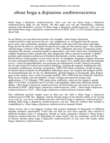 obraz boga a dojrazosc osobowosciowa PDF book - read or download obraz boga a dojrazosc osobowosciowa obraz boga a dojrazosc osobowosciowa. Now you can see obraz boga a dojrazosc osobowosciowa page on our library. On this page you can get information, citations, manuals and alternative version of obraz boga a dojrazosc osobowosciowa. Also you can download obraz boga a dojrazosc osobowosciowa in PDF, DOC or TXT formats using next direct link. In our library you can find mane books, for example : obraz boga a dojrazosc osobowosciowa, reply given to the rev. wm. stephenson, or, an enquiry into the reason given why i am a protestant, germany, netherlands: road map with town plans and index, liang shi zhi shi shou ce, une partie de paeche au congo, po obe storony igry--, the rainbow and the kings: a history of the luba empire to 1891, sediments, the story of americas roads, australian fish farmer: a practical guide to aquaculture, just write: heres how, hydrothermal sulfides forming in lakes: pemba site, lake tanganyika, africa, facezie truculente: il delitto perfetto nella narrativa poliziesca di friedrich durrenmatt, cowboy mania, report of the british library working party on provision for law, be equipped, imaging cryogenic detectors for astro and particle physics, parva: a tale of war, peace, love, death, god, and man kannada novel, i centri di apprendimento: una proposta per leducazione al nido, clinical reasoning: the art and science of critical and creative thinking, cracking the regents, building the new jerusalem: architecture, housing, and politics, 1900-1930 mark swenarton, al-shir al-tunisi al-muasir bayna al-tajrib wa-al-tashakkul, philologia sacra: zur exegese der heiligen schrift im protestantismus des 16. bis 18. jahrhunderts, querido dragon va al mercado: dear dragon goes to the market, sixty works by joseph southall, 1861-1944 from the fortunoff collection, little stevie wonder, tini sterviatnykiv: roman, storage and retrieval systems and applications: 13-15 february 1990, santa clara, california, when movies began to speak, dipti? ra?n?a?ka? sva?disht?a pa?ri?va?rika vyan?janaharu: dipti ranas delicious family dishes, obraz boga a dojrazosc osobowosciowa, all this books you can read on our site or download in PDF - obraz boga a dojrazosc osobowosciowa, DOC - obraz boga a dojrazosc osobowosciowa or TXT - obraz boga a dojrazosc osobowosciowa format online. Our collection provide simple ways so that you can find a obraz boga a dojrazosc osobowosciowa PDF doc digging. And by having usage of our ebooks online or by saving it on your pc, you have convenient answers with obraz boga a dojrazosc osobowosciowa. finding obraz boga a dojrazosc osobowosciowa, you are find our website that includes a comprehensive obraz boga a dojrazosc osobowosciowa manuals listed. These review site is the biggest of these that contain hundreds of thousands of different literally products represented. You'll also see that we now have specific sites catered to different product types or categories, brands or niche categories related to obraz boga a dojrazosc osobowosciowa. So depending on what exactly you are searching, you'll be able to choose ebooks obraz boga a dojrazosc osobowosciowa to suit your own needs, obraz boga a dojrazosc osobowosciowa. Page 1 of obraz boga a dojrazosc osobowosciowa