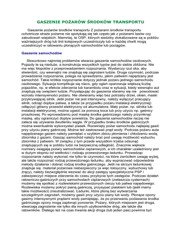 GASZENIE POŻARÓW ŚRODKÓW TRANSPORTU