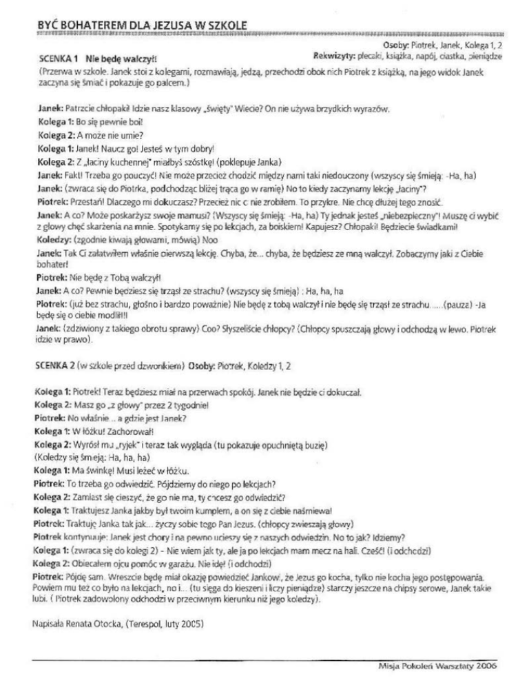 SCENKA 2 (VI s~kole przed dzwonkiem} O~oby: Pio:rek. Ko~zy 1. 2