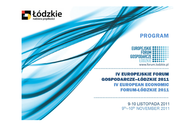 PROGRAM Program IV Europejskie Forum Gospodarcze - Łódzkie 2011 Środa, 9 listopada 2011r. andel’s Hotel Łódź, ul. Ogrodowa 17 09:00 - 10:00 Rejestracja gości 10:15 - 10:30 Sala Sa tin Uroczyste otwarcie – Witold Stępień, Marszałek Województwa Łódzkiego Wydarzenia główne 10:30 - 12:30 Sal a Sati n Wydarzenia towarzyszące 10:30 - 10:50 Foyer Konfer enc yjne Sal a Cotton Prezentacja projektu „Sieć Centrów Obsługi Inwestorów i Eksporterów Rola Środkowoeuropejskiego Konsorcjum Bioregionów w rozwoju bio i nanotechnologii w Europie Środkowowschodniej Poddziałanie 6.2.1 PO IG 10:30 – 11:00 Stoiska: Sal a Cashm er e 1 „Intensyfikacja wdrażania instrumentów finansowych w zakresie ochrony środowiska, jako element rozwoju przedsiębiorczośi w regionie” 12:30 - 13:00 Sal a Sati n 10:50 - 13:10 Gmin – prezentacja branżowych ofert Łódzka Specjalna Strefa Ekonomiczna S.A. Sal a Cotton Łódzka Agencja Rozwoju Regionalnego S.A. - konferencja towarzysząca inauguracji Centrum Obsługi Inwestorów i Eksporterów przy współpracy z Delloitte Doradztwo Podatkowe Sp. z o.o. 11:00 - 13:00 Regionów – prezentacja ofert współpracy - organizator Łódzka Agencja Rozwoju Regionalnego S.A. “Instrumenty wsparcia rozwoju przedsiębiorczości, zachęty inwestycyjne oferowane na poziomie regionu i kraju oraz instytucje właściwe dla poszczególnych instrumentów” Inauguracja Środkowoeuropejskiego Konsorcjum Bioregionów Wystawa innowacyjnych sektorów Polska Agencja Rozwoju Przedsiębiorczości Łódzki Regionalny Park Naukowo-Technologiczny Sp. z o.o. Sal a Vel our 2 „Zainwestuj w innowacje – utwórz nową firmę i pozyskaj do 200 000 Euro” - Małopolska Agencja Rozwoju Regionalnego 2 Europejskie Forum Gospodarcze – Łódzkie 2011 13:00 - 13:30 Przerwa kawowa 13:10 - 13:40 Sal a Cashm er e 1 Konferencja prasowa 13:30 - 15:30 Sal a Sati n 13.30 - 15.00 Kongres Innowacyjnych Regionów „Rola obszarów metropolitalnych w rozwoju regionów” - prof. zw. dr hab. Aleksandra Jewtuchowicz, Kierownik Katedry Gospodarki Regionalnej i Środowiska, Uniwersytet Łódzki Sal a Vel our 2 Bank PKO BP 13:40 - 14:00 Sal a Cotton Uroczysta Inauguracja Centrum Obsługi Inwestorów i Eksporterów „Rola subregionalnych biegunów wzrostu w kreowaniu przestrzeni Województwa Łódzkiego” - Dorota Ryl, Wicemarszałek Województwa Łódzkiego - Jacek Walczak, Prezydent Miasta Sieradza - Janusz Baranowski, p.o. Dyrektora „Jak bank może wspierać rozwój regionów.” - Piotr Galas, Dyrektor Departamentu Klienta Sektora Publicznego, Powszechna Kasa Oszczędności Bank Polski Spółka Akcyjna Departamentu ds. Przedsiębiorczości, Urząd Marszałkowski w Łodzi "Zrównoważony rozwój w gospodarce opartej na wiedzy” - prof. Małgorzata Burchard–Dziubińska, Prezes Polskiego Towarzystwa Ekonomicznego Oddział w Łodzi 14:00 - 15:25 Sal a Cotton „Bariery prawne i podatkowe przy planowaniu i realizacji projektów inwestycyjnych – sposoby ich minimalizowania i pokonywania” „Rozwój branży Business Process Outsourcing (BPO) w Polsce i innych krajach Europy Centralnej i Wschodniej. Jakie czynniki wpływają na decyzje inwestorów BPO szukających miejsca dla nowych Centrów Operacyjnych?” - Wiktor Doktór, Dyrektor Zarządzający, SouthWestern BPS Poland Sp. z o.o. „Rozwój nowoczesnych technologii w regionach” 15:25 - 15:40 Sal a Cotton wystąpienie Prezesa Zarządu Łódzkiej Specjalnej Strefy Ekonomicznej S.A. - Andrzej Styczeń, Prezes Łódzkiego Regionalnego Parku Naukowo Technologicznego Sp. z o.o. - Joakim Robertsson, Project Manager, LTC AB, Jönkoping, Szwecja „Polskie klastry i polityka klastrowa” - Andrzej Rybka, ekspert w projekcie: „Polskie klastry i polityka klastrowa” 15:30 - 16:30 Przerwa 15.30 - 16.30 Sal a Vel our 2 Pierwsze kroki w biznesie - Testowanie biznesu w Programie Preinkubacji AIP" - Akademickie Inkubatory Przedsiębiorczości 16:30 - 18:00 Sal a Sati n Prezentacja nowego okresu programowania w kontekście finansowania przedsiębiorczości 16:30 - 18:00 Sal a Dam ask 1, 2 Panel organizacji studenckich – Ministerstwo Rozwoju Regionalnego 3 Europejskie Forum Gospodarcze – Łódzkie 2011 IV Europejskie Forum Gospodarcze - Łódzkie 2011 Czwartek, 10 listopada 2011r. Wydarzenie główne Wydarzenia towarzyszące SALONY BRANŻOWE cz. I 09:00 - 11:00 09:00 - 11:00 09:00 - 11:00 Foyer Konfer enc yjne Sal a Si l k 1 Bio- i nanotechnologie Wystawa innowacyjnych sektorów Sal a Dam ask Stoiska: Innowacyjne włókiennictwo Regionów – prezentacja ofert współpracy Sal a Vel our 2 Gmin – prezentacja branżowych ofert Energetyka i budownictwo pasywne 09:00 - 11:00 09:00 - 11:00 Sal a Cotton 1 Ekologiczne rolnictwo i przetwórstwo rolno-spożywcze Łódzka Specjalna Strefa Ekonomiczna S.A. Sal a Si l k 2 Łódzka Agencja Rozwoju Regionalnego S.A. Infrastruktura i transport 09:00 - 11:00 Polska Agencja Rozwoju Przedsiębiorczości Sal a Vel our 1 Łódzki Regionalny Park Naukowo-Technologiczny Sp. z o.o. IT / ICT 09:00 - 11:00 Sal a Sati n Inwestowanie w kapitał ludzki 11:00 - 11:30 Przerwa kawowa SALONY BRANŻOWE cz. II 11:30 - 14:00 Sal a Si l k 1 Bio- i nanotechnologie 11:30 - 14:00 Sal a Dam ask Innowacyjne włókiennictwo 4 11:30 - 14:00 Sal a Cotton 2 „ImpEx – rozwój modularnej koncepcji nawiązywania stosunków handlowych między niemiecką Turyngią a Polską” - przedstawiciele Bildungswerk der Thüringer Wirtschaft e.V. Auβenstelle Jena - Konferencja współorganizowana przez Polsko Amerykańskie Centrum Zarządzania Uniwersytetu Łódzkiego. Europejskie Forum Gospodarcze – Łódzkie 2011 11:30 - 14:00 Sal a Vel our 2 Energetyka i budownictwo pasywne 11:30 - 14:00 Sal a Cotton 1 Ekologiczne rolnictwo i przetwórstwo rolno-spożywcze 11:30 - 14:00 Sal a Si l k 2 Infrastruktura i transport 11:30 - 14:00 Sal a Vel our 1 IT / ICT 11:30 - 14:00 Sal a Sati n 11:30 – 11:40 Inwestowanie w kapitał ludzki 14:00 - 15:00
