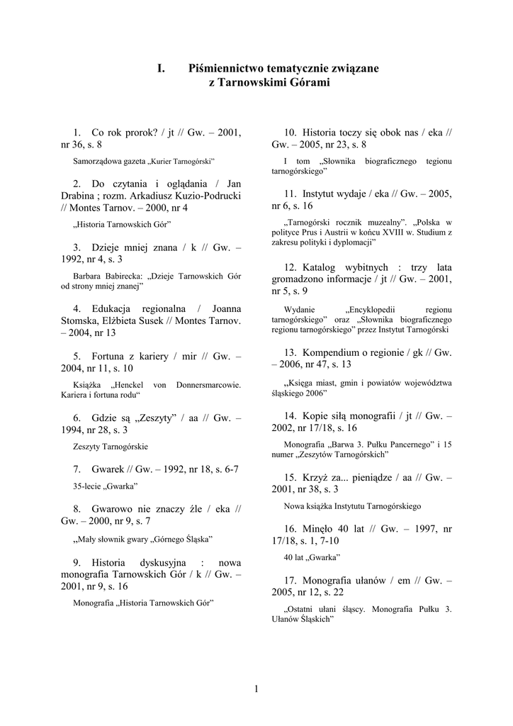 Piśmiennictwo tematycznie związane z Tarnowskimi Górami