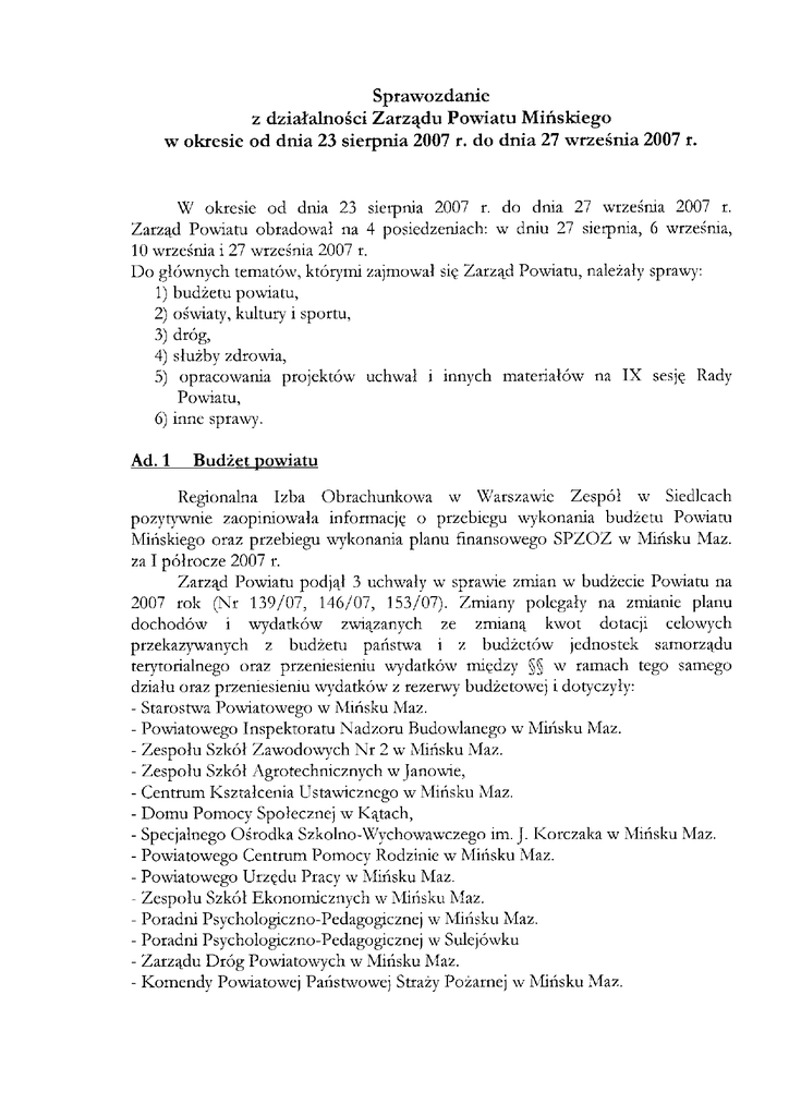 - Nr 138/07 z drta 21 sierpnia 2007 r. w spraüe ptzyjpcia sprawozdaniaz rcakzl.cji