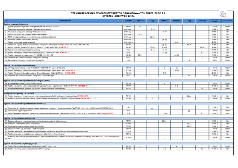 pobierz terminarz szkoleń - Polskie Centrum Badań i Certyfikacji