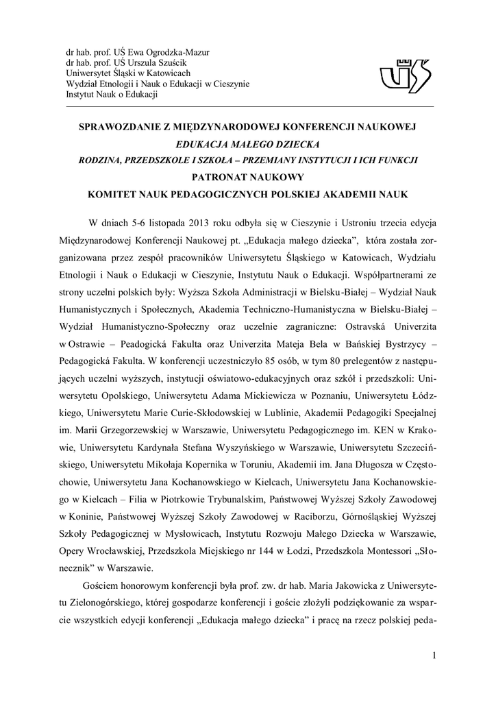sprawozdanie z midzynarodowej konferencji naukowej edukacja