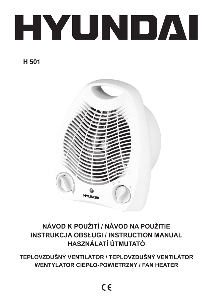 H 501 NÁVOD K POUŽITÍ / NÁVOD NA POUŽITIE INSTRUKCJA OBSŁUGI / INSTRUCTION MANUAL HASZNÁLATÍ ÚTMUTATÓ Teplovzdušný ventilátor / Teplovzdušný ventilátor Wentylator ciepło-powietrzny / Fan heater Vážený zákazníku, děkujeme Vám za zakoupení našeho produktu. Před uvedením tohoto přístroje do provozu si velmi pozorně přečtěte návod k obsluze a tento návod spolu se záručním listem, pokladním dokladem a podle možností i s obalem a vnitřním obsahem obalu dobře uschovejte. Všeobecné bezpečnostní pokyny • Tento spotřebič mohou používat děti ve věku 8 let a starší a osoby se sníženými fyzickými, smyslovými či mentálními schopnostmi nebo nedostatkem zkušeností a znalostí, pokud jsou pod dozorem nebo byly poučeny o používání spotřebiče bezpečným způsobem a rozumí případným nebezpečím. Děti si se spotřebičem nesmějí hrát. Čištění a údržbu prováděnou uživatelem nesmějí provádět děti, pokud nejsou starší 8 let a pod dozorem. Děti mladší 8 let se musí držet mimo dosah spotřebiče a jeho přívodu. • Před výměnou příslušenství nebo přístupných části, které se při používání pohybují, před montáží a demontáží, před čištěním nebo údržbou, spotřebič vypněte a odpojte od el. sítě vytažením vidlice napájecího přívodu z el. zásuvky! • Nikdy spotřebič nepoužívejte, pokud má poškozený napájecí přívod nebo vidlici, pokud nepracuje správně nebo upadl na zem, poškodil se a je netěsný. V takových případech zaneste spotřebič do odborného servisu k prověření jeho bezpečnosti a správné funkce. • Jestliže je napájecí přívod tohoto spotřebiče poškozen, musí být přívod nahrazen výrobcem, jeho servisním technikem nebo podobně kvalifikovanou osobou, aby se tak zabránilo vzniku nebezpečné situace. • Vždy odpojte spotřebič od napájení, pokud ho necháváte bez dozoru a před montáží, demontáží nebo čištěním. • Používejte tento přístroj výlučně pro soukromou potřebu a pro stanovené účely. Tento přístroj není určen pro komerční použití. Přístroj je určen pro domácí použití. • Chraňte ho před horkem, přímým slunečním zářením, vlhkostí (v žádném případě jej neponořujte do kapalin) a stykem s ostrými hranami. Nepoužívejte přístroj v případě, že máte vlhké ruce. Jestliže dojde k navlhčení nebo namočení přístroje, okamžitě vytáhněte zástrčku ze zásuvky. Vyvarujte se styku s vodou. • Přístroj nesmí zůstat v provozu bez dozoru. Jestliže musíte pracoviště opustit, vždy přístroj vypněte, resp. vytáhněte zástrčku ze zásuvky (vždy tahejte za zástrčku, nikdy ne za kabel). • Abyste ochránili děti před riziky spojenými s elektrickými přístroji, postarejte se o to, aby kabel nevisel dolů a děti na přístroj nedosáhly. • Pravidelně kontrolujte přístroj a přívodní kabel z hlediska poškození. Jestliže přístroj vykazuje nějakou závadu, neuvádějte jej do provozu. • V případě selhání či nesprávné činnosti přístroj vypněte a nepokoušejte se ho sami opravit. Obraťte se na autorizovaný servis a žádejte originální náhradní díly. Nedodržení výše uvedeného může ovlivnit bezpečnost spotřebiče. • Respektujte, prosím, následující „Speciální bezpečnostní pokyny pro tento přístroj“. Speciální bezpečnostní pokyny pro tento přístroj • ABYSTE PŘEDEŠLI PŘEHŘÁTÍ ZAŘÍZENÍ, TEPLOVZDUŠNÝ VENTILÁTOR NEZAKRÝVEJTE!!! CZ - 2 CZ • Přístroj připojujte jen k jednofázové zástrčce o napětí podle štítku přístroje. • Nenechávejte zařízení zapnuté, pokud opouštíte dům: spínač musí být ve vypnuté poloze (0) a termostat na minimu. Zařízení vždy vytáhněte ze zástrčky. • Hořlavé předměty, jako je nábytek, čalounění, lůžkoviny, papír, oděvy, záclony atd., ukládejte nejméně 50 cm od tohoto ventilátoru. • Pokud jej budete připevňovat na zeď, nepoužívejte hořlavé materiály, jako je dřevo nebo syntetické materiály (plasty). Nezavěšujte žádné předměty na ventilátor ani před něj. • Udržujte vstup a výstup vzduchu volný nejméně 1 m před a 50 cm za ventilátorem. • Neinstalujte přístroj bezprostředně pod zásuvkou. • Nepřipusťte, aby se ventilátoru dotýkaly nebo si s ním hrály děti a zvířata. Pozor! Výstupy vzduchu mohou být za provozu horké (více než 80°C). • Nepoužívejte ventilátor v prostorách obsahujících výbušné plyny nebo při práci s hořlavými rozpouštědly, laky nebo lepidly. • Udržujte ventilátor v čistotě. Zabraňte vniknutí jakýchkoliv předmětů do vstupních nebo výstupních otvorů, mohlo by to vést k zasažení elektrickým proudem, k požáru nebo poškození ventilátoru. • Spotřebič nesmí být umístěn těsně pod zásuvkou. • Přístroj není vybaven zařízením pro kontrolu teploty v místnosti. Nepoužívejte v malých místnostech, jsou-li obsazeny osobami, které nejsou schopny opustit tuto místnost vlastními silami, není-li zajištěn trvalý dozor. Varování • Nepoužívejte přístroj v blízkosti sprch, van, umyvadel, bazénů apod. • Přístroj vždy používejte ve svislé poloze. • Nepoužívejte přístroj k sušení prádla. Nikdy nezakrývejte vstupní a výstupní mřížky (nebezpečí přehřátí). • Ventilátor musí být nejméně 50 cm od nábytku a jiných předmětů. • Zařízení se musí instalovat tak, aby na spínače a jiné ovladače nebylo možno dosáhnout při sprchování či koupání ve vaně. 2 • Nepoužívejte přístroj v místnostech menších než 4 m . Popis ovládacích prvků P1. Termostat P2. Kontrolka provozu P3. Držadlo P4. Ovladač Pokyny k použití Intalace Přístroj nevyžaduje žádnou instalaci, používá se pouze jako přenosné zařízení. Po