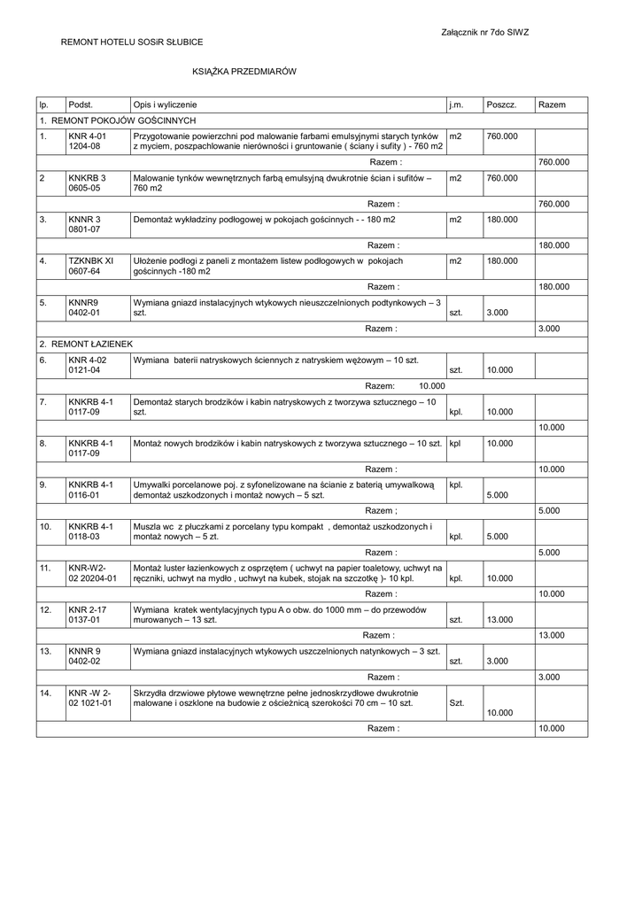 Załącznik nr 7do SIWZ REMONT HOTELU SOSiR SŁUBICE