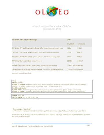 Cennik Wyszukiwarki Podróżników Olneo.pl styczeń 2014