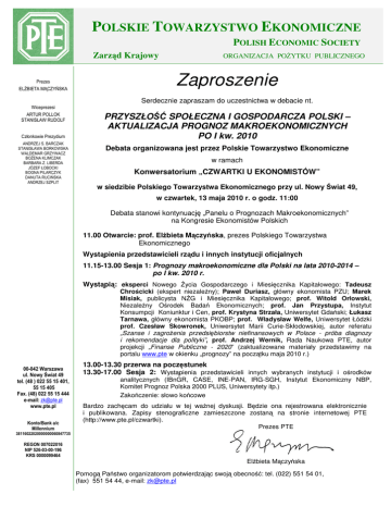 Zaproszenie - Polskie Towarzystwo Ekonomiczne