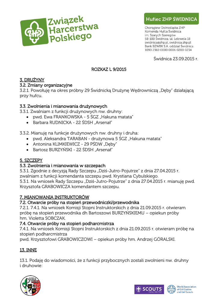Świdnica 23.09.2015 r. ROZKAZ L 9/2015 3 - ZHP