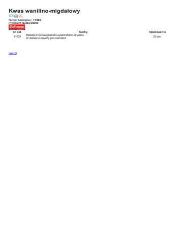 Kwas wanilino-migdałowy Numer katalogowy: 11003 Producent: BioSystems nr kat. 11003 powrót Cechy Metoda chromatograficzno-spektrofotometryczna W zestawie zawarty jest standard. Opakowanie 20 ozn.