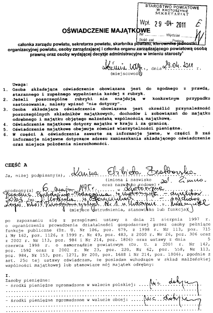 Wpł' 2s -0{osWlADczENlE MAJĄTK WE