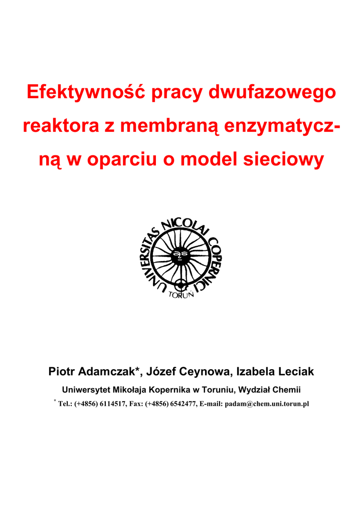 Efektywność pracy dwufazowego reaktora z membraną enzymatyczną w oparciu o model sieciowy Piotr Adamczak*, Józef Ceynowa, Izabela Leciak Uniwersytet Mikołaja Kopernika w Toruniu, Wydział Chemii * Tel.: (+4856) 6114517, Fax: (+4856) 6542477, E-mail: [email protected] WSTĘP Wykorzystanie bioreaktorów z mem- zymatyczną pozwala na takie prowa- branami enzymatycznymi jest ciągle dzenie procesu aby wpływ niepożąda- ograniczone przez duży spadek ak- nych efektów ograniczyć do minimum. tywności enzymu, spowodowany za- Typowym przykładem procesu, w któ- równo przez proces immobilizacji, jak rym wpływ wymienionych ograniczeń i wszelkiego typu ograniczenia trans- jest szczególnie widoczny jest hydroli- portu reagentów do i ze środowiska za triglicerydów w dwufazowym reak- reakcji. Procesy te w znaczącym torze stopniu wpływają również na zjawisko Opracowany model matematyczny ta- odwracalnej inhibicji biokatalizatora kiego reaktora pozwala na określenie reagentami zalegającymi w środowi- warunków prowadzenie procesu hydro- sku reakcji. Znajomość wpływu wa- lizy w celu uzyskania wysokiej wydaj- runków prowadzenia procesu na wy- ności reaktora, bądź założonego skła- dajność bioreaktora z membraną en- du z membraną mieszaniny enzymatyczną. poreakcyjnej. MODEL REAKTORA Pełny opis modelu reaktora przedsta- wracalną dezaktywację lipazy oraz nie- wiono w pracy [1]. Założono w nim odwracalną ścisłe powiązanie procesów kinetycz- procesy dyfuzyjnego transportu re- nych i transportowych. Zaproponowa- agentów do i z środowiska reakcji do ny model uwzględnia zarówno proce- reaktora i z niego do zbiorników ze- sy chemiczne zachodzące w reakto- wnętrznych. rze (reakcję hydrolizy triglicerydu, od- inhibicję enzymu), jak i Rys. 1 Model przedziałowy reaktora Hydrofilowa membrana z powierzch- procesy dezaktywacji lipazy zachodzą w niowo immobilizowanym enzymem se- warstwie reakcyjnej ( r ), zlokalizowanej paruje dwie fazy - organiczną (trigliceryd w membranie i w przymembranowej war- T) i wodną (bufor fosforanowy). Glicerol stwie olejowej. Procesy dyfuzji reagentów G powstający w warstwie reakcyjnej w hydrofobowych zachodzą w warstwach wyniku enzymatycznej hydrolizy triglice- reakcyjnej (r) i przymembranowej war- rydu dyfunduje przez hydrofilową mem- stwie dyfuzyjnej (1,2) oraz komorze reak- branę do fazy wodnej (n), a następnie tora (n). Procesy dyfuzyjnego transportu hydrodynamicznie zewnętrznego glicerolu zachodzą w hydrofilowej mem- zbiornika. Pozostałe produkty A – kwasy branie podzielonej na warstwy (r,1,2,3) i tłuszczowe, D – diglicerydy, M – mono- w komorze reaktora (n). Procesy hydro- glicerydy, dyfundują z warstwy reakcyj- dynamicznego transportu reagentów za- nej do fazy olejowej (n), a następnie są chodzą z odpowiednich komór reaktora transportowane hydrodynamicznie do (n) do zewnętrznych zbiorników faz (z). do zbiornika fazy olejowej. Wszystkie etapy Na elementarny cykl reakcyjno – chemiczne hydrolizy oleju, inhibicji lipa- transportowy w opracowanym modelu zy kwasami tłuszczowymi jak również składają się następujące procesy: • Reakcja hydrolizy tri-, di-, oraz monoglicerydów • • Procesy transportu reagentów z warstwy reakcyjnej do zbiorników faz Procesy nieodwracalnej i odwracalnej (Kompletny model sieciowy inhibicji i enzymu przedstawiono w pracy [1]) reaktora ANALIZA EFEKTYWNOŚCI REAKTORA Analiza modelu wykazała, że efektywność pracy reaktora zależy przede - stałej szybkości reakcji inhibicji lipazy powstającymi kwasami tłuszczowymi, - stężenia lipazy immobilizowanej na wszystkim od: - dyfuzyjnego transportu glicerydów z i membranie. do warstwy reakcyjnej, Charakterystyka hydrolizy triglicerydu limitowana kinetyką reakcji Symulację procesu hydrolizy w warun- - stężenie lipazy w warstwie reakcyjnej 5.04⋅10-7 kach ograniczeń kinetycznych prowa- jest dzono przy następujących założeniach: 6.30⋅10-5 (mol cm-3 ). - szybkość reakcji inhibicji kwasami Efekt ograniczeń kinetycznych reakcji tłuszczowymi jest zaniedbywalnie mała (kinh. =0), w zakresie od do hydrolizy jest szczególnie dobrze widoczny przy stężeniach enzymu nie - szybkość dyfuzji kwasów tłuszczo- przekraczających 1×10-5 mol cm-3. Wyniki wych i glicerydów jest duża i wynosi symulacji (dla stężenia enzymu 5.04×10-7 1⋅10-6 (cm2 s-1), mol cm-3) przedstawiono na Rys. 2. -3 Stężenie mono- i diglicerydów ·103 [mole cm ] 0.4 -3 Stężenie kwasów tł. i gliceryny · 103 [mole cm ] 3.5 3.0 0.3 2.5 Kwasy tł. Gicerol Diglicerydy Monoglicerydy 2.0 0.2 1.5 1.0 0.1 0.5 0.0 0.0 0 1 2 3 4 Czas reakcji [h] Rys. 2. Czasowe zmiany stężenia reagentów w procesie hydrolizy limitowanej kinetyką reakcji Obserwowane maksima stężeń mono- metrii reakcji (1:3), i wynosi dla stopnia (M) i diglicerydów (D) w zbiornikach faz i przereagowania 25% warstwie reakcyjnej są wyraźnie roz- wyższych stężeń immobili-zowanej lipazy dzielone. W początkowym okresie prze- maksima stężeń M i D obserwowane w biegu reakcji stosunek stężenia glicerolu zewnętrznych zbior-nikach faz przesuwa- do kwasów tłuszczowych jest zdecydo- ją się do wyższych stopni przereagowa- wanie niższy niż wynika to ze stechio- nia (około ~60% konwersji) około 1:15. Dla (Fig.3). 400 CE=6.30·10-6 mol cm-3 CE=1.26·10-5 mol cm-3 Stężenie ·106 [mole cm-3] D1 CE=2.52·10-6 mol cm-3 CE=5.04·10-7 mol cm-3 300 D2 M1 M2 200 M3 100 D3 M4 D4 0 0 20 40 60 80 100 Stopień konwersji [%] Rys.3. Stężenia mono i diglicerydów w funkcji stopnia przereagowania dla różnych stężeń lipazy w warstwie reakcyjnej Efekt ten jest wynikiem wzrostu dyfuzyj- drolizy akumulują się w warstwie reakcyj- nych ograniczeń w transporcie glicery- nej i przymembranowych warstwach dy- dów i kwasów tłuszczowych z i do war- fuzyjnych, nie opuszczając środowiska stwy reakcyjnej; przy dużym stężeniu li- reakcji wchodzą w dalsze etapy hydroli- pa