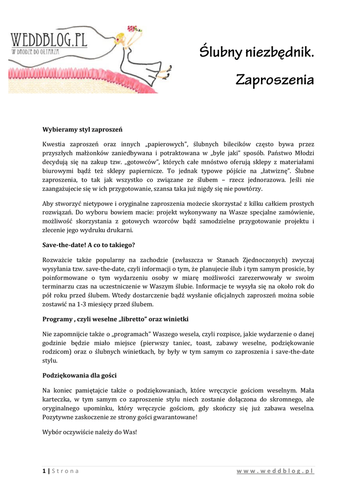 1 | Strona www.weddblog.pl Wybieramy styl zaproszeń Kwestia
