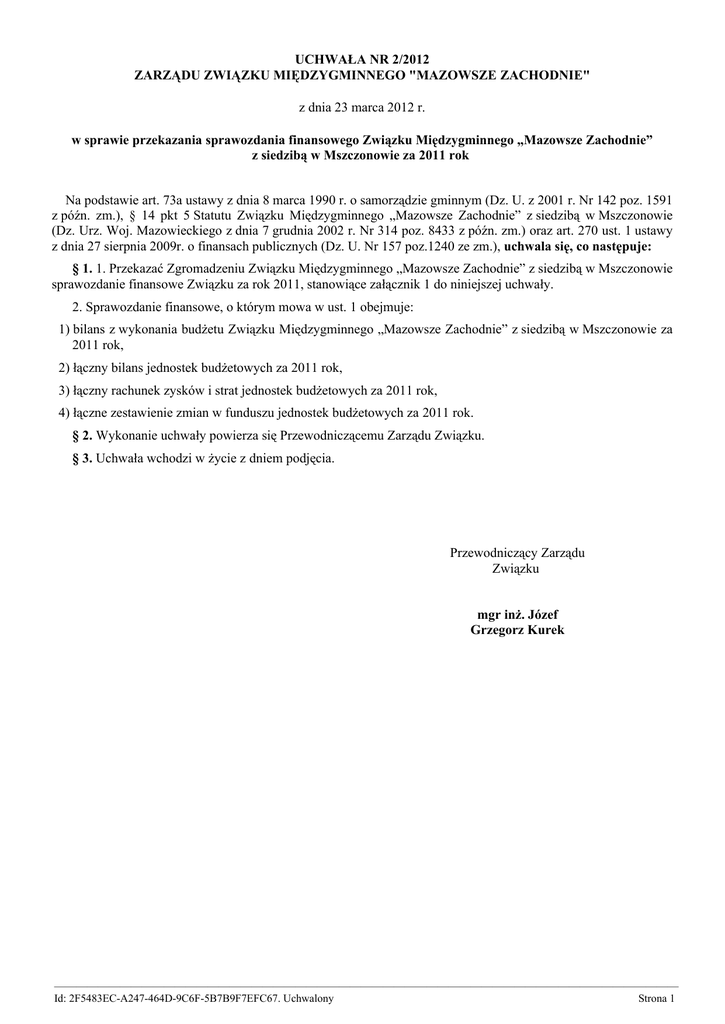 Uchwała Nr 2/2012 z dnia 23.03.2012r. w sprawie przekazania