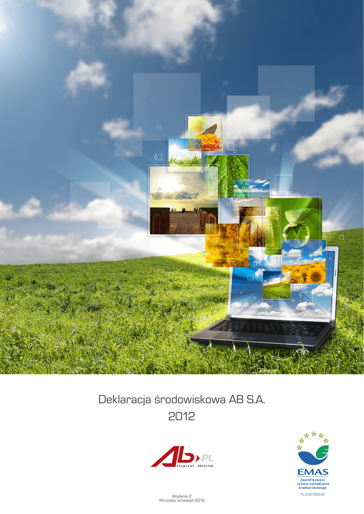 Deklaracja środowiskowa AB S.A. 2012 Wydanie 2 Wrocław, wrzesień 2012 PL.2.02-003-32 SPIS TREŚCI SŁOWO WSTĘPNE 03 AB S.A. – INFORMACJE OGÓLNE 04 EMAS W AB S.A. 06 ZGODNOŚĆ Z PRAWEM 09 POLITYKA ŚRODOWISKOWA 10 ASPEKTY ŚRODOWISKOWE 11 CELE I ZADANIA ŚRODOWISKOWE 14 WSKAŹNIKI DZIAŁALNOŚCI ŚRODOWISKOWEJ 15 PODSUMOWANIE 18 OŚWIADCZENIE WERYFIKATORA 19 SŁOWO WSTĘPNE Szanowni Państwo, Drodzy Klienci, Pracownicy, Przyjaciele naszej firmy. AB S.A. to pierwszy dystrybutor IT i elektroniki użytkowej na polskim rynku, który wdrożył System Ekozarządzania i Audytu (EMAS). Wychodzimy tym samym poza zakres podstawowych wymogów prawnych, aby osiągać jak najlepsze wyniki prowadzonych działań prośrodowiskowych. Dołączamy do elitarnego grona organizacji, które traktują aspekty środowiskowe na równi z innymi elementami prowadzonej działalności. Wdrożenie systemu EMAS to nie tylko ograniczenie negatywnego wpływu na środowisko. Sprawny system zarządzania środowiskowego znacząco przyczynia się do obniżenia kosztów działalności, np. związanych z utylizacją odpadów, zmniejszeniem zużycia energii, wody, wpływając jednocześnie na wzrost konkurencyjności. To także usprawnione zarządzanie ryzykiem – zmniejszenie prawdopodobieństwa wystąpienia awarii oraz poprawa bezpieczeństwa pracy. Jesteśmy z tego faktu niezwykle dumni. Przyczyniając się do poprawy ochrony środowiska, dążymy jednocześnie do efektywniejszego funkcjonowania naszej spółki i dalszego umacniania relacji z lokalną społecznością. Przekazuję na Państwa ręce deklarację środowiskową za rok 2011, w której podsumowujemy nasze działania i efekty ekologiczne za lata 2009–2011. Andrzej Przybyło Prezes Zarządu AB S.A 5.09.2012 03 | Deklaracja środowiskowa AB S.A. – 2012 r. 1 AB S.A. – INFORMACJE OGÓLNE Nasze doświadczenie to blisko 20 lat obecności na rynku. Dystrybutor IT Firma AB S.A. to znany dystrybutor IT (między innymi – sprzętu komputerowego, gier komputerowych, oprogramowania, elektroniki użytkowej) i sprzętu AGD w regionie Europy Środkowo-Wschodniej. Według rankingów branżowych – m.in. Computerworld TOP 200 w Polsce i „Reseller Magazine” w Czechach – AB S.A. jest największym dystrybutorem pod względem przychodów w regionie trzech krajów: Polski, Czech i Słowacji. • Dystrybutor sprzętu komputerowego Oferujemy szeroki wybór sprzętu komputerowego, jesteśmy czołowym dystrybutorem m.in. komputerów, notebooków i serwerów w Polsce. Zapewniamy szeroką gamę produktów oraz najwyższą sprawdzoną jakość. • Dystrybutor oprogramowania Nasza firma zajmuje się dystrybucją oprogramowania na terenie całej Polski. Oferujemy oprogramowanie do komputerów, serwerów, telefonów komórkowych, specjalizujemy się w dystrybucji systemów operacyjnych, oprogramowania użytkowego i gier komputerowych. • Dystrybutor AGD Specjalizujemy się w dystrybucji sprzętu AGD o szerokim zakresie stosowania, renomowanych producentów krajowych i zagranicznych. Władze spółki Andrzej Przybyło Zbigniew Mądry Grzegorz Ochędzan Krzysztof Kucharski Prezes Zarządu AB S.A. Członek Zarządu AB S.A. Dyrektor ds. Handlowych Członek Zarządu AB S.A. Dyrektor Finansowy Członek Zarządu AB S.A. Dyrektor ds. Prawnych i Korporacyjnych Pełnomocnik Zarządu ds. Zintegrowanego Systemu Zarządzania i EMAS – Marcin Pokorski Zespół koordynujący utrzymanie systemu EMAS: Mariusz Ćwik, Marcin Pawlik, Marcin Pokorski Zatrudnienie 318 osób Deklaracja środowiskowa AB S.A. – 2012 r. | 04 AB S.A. – INFORMACJE OGÓLNE AB S.A. – ROZMIAR MA ZNACZENIE Lider dystrybucji IT i elektroniki użytkowej na terenie Polski, Czech i Słowacji Najbardziej efektywna organizacja w regionie Europy Środkowo-Wschodniej – SGA (suma kosztów sprzedaży i kosztów zarządu do przychodów ze sprzedaży) na poziomie 1,7% Ponad 4,3 mld złotych obrotów rocznie – rekordowe wzrosty nawet w czasach kryzysu Ponad 30,0 tys. produktów w ofercie 600 największych producentów z całego świata Ponad 14,5 tys. aktywnych partnerów handlowych – najszersza i dynamicznie rosnąca baza klientów 2010–2011 Wdrożenie systemu EMAS. Wdrożenie systemu ERP (system informatyczny wspomagający zarządzanie przedsiębiorstwem). 2009 Zaproszenie do grona członków „Global Technology Distribution Council” 2008 Modernizacja i rozbudowa centrum logistycznego 2007 Przejęcie AT Comuputers Holding a.s. 2006 Pierwsza publiczna oferta akcji spółki i debiut na GPW 1998 Przekształcenie w AB S.A. 1993 Powstanie Przedsiębiorstwa Handlowego Ab Iwona Przybyło z siedzibą we Wrocławiu 05 | Deklaracja środowiskowa AB S.A. – 2012 r. 2 EMAS W AB S.A. System Ekozarządzania i Audytu (EMAS) jest wspólnotowym, dobrowolnym instrumentem potwierdzającym ciągłe doskonalenie efektywności ekologicznej (środowiskowej) w organizacjach. Organizacje zarejestrowane w EMAS działają w pełni zgodnie z prawem, posiadają funkcjonujący system zarządzania środowiskowego oraz komunikują swoje efekty działalności proekologicznej poprzez publikowanie niezależnie zwalidowanej deklaracji środowiskowej. W spółce AB S.A. wdrożony jest Zintegrowany System Zarządzania zgodny z wymaganiami norm ISO 9001 oraz ISO 14001 obejmujący: montaż, sprzedaż, dystrybucję i serwis komputerów i serwerów, oprogramowania, elektroniki użytkowej i telefonii komórkowej oraz konfekcjonowanie materiałów eksploatacyjnych do drukarek. Na system składają się poszczególne komórki organizacyjne począwszy od pierwszego kontaktu z klientem, poprzez przyjęcie zamówienia, jego realizację, serwis oraz powtórne wykorzystanie lub unieszkodliwienie odpadu. AB S.A., będąc liderem w branży dystrybucji IT w Polsce oraz innych krajach Europy Środkowo–Wschodniej, uznaje dbałość o środowisko naturalne za jeden z priorytetów swojej działalności rynkowej, posiadając już Zintegrowany System Zarządzania Jak