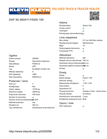 http://www.kleyntrucks.pl/200558/ 1/3 DAF 95.360ATI FASSI 105