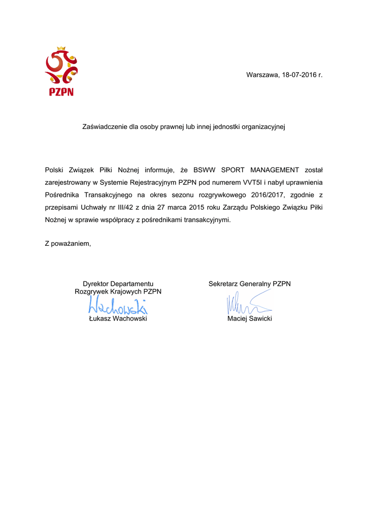 Warszawa, 23.07.2014 Pan Prezes Wojewódzkiego ZPN