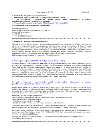 Informacja nr 292 (7) 19.03.2010 1. Konkurs dla młodych
