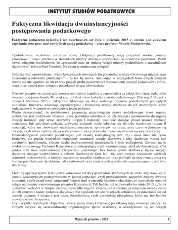 Faktyczna likwidacja dwuinstancyjności postępowania podatkowego