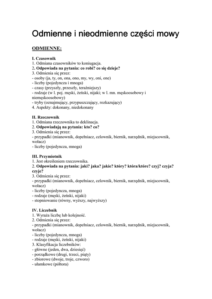 Odmienne i nieodmienne czesci mowy