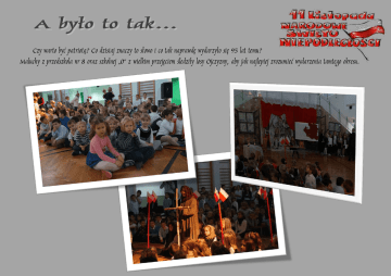 Czy warto być patriotą? Co dzisiaj znaczy to słowo i co tak naprawdę wydarzyło się 95 lat temu? Maluchy z przedszkola nr 8 oraz szkolnej „0” z wielkim przejęciem śledziły losy Ojczyzny, aby jak najlepiej zrozumieć wydarzenia tamtego okresu. Przedszkolaki własnoręcznie wykonały biało - czerwone kotyliony. Tak udekorowane defilowały w rytm melodii pieśni „My, Pierwsza Brygada” przed samym Marszałkiem Piłsudskim (w tej roli nieco onieśmielony Wiktor, lat 5)