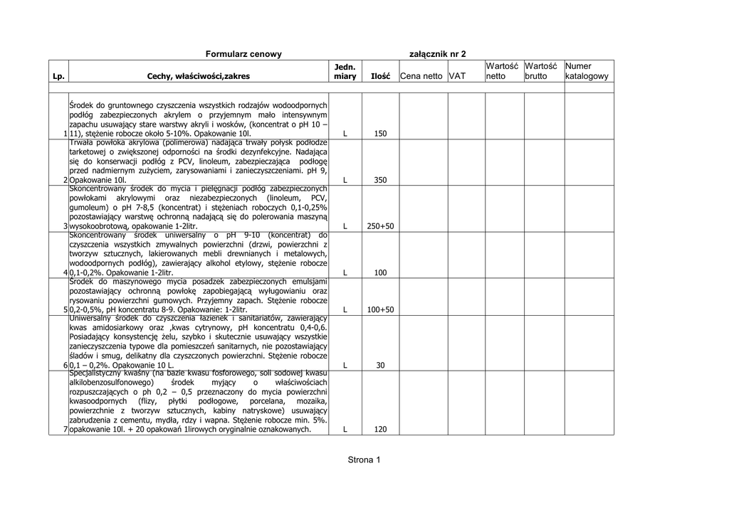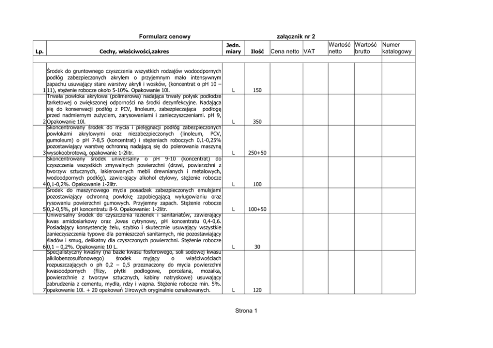 Strona 1 Formularz cenowy załącznik nr 2 Cena netto VAT Wartość
