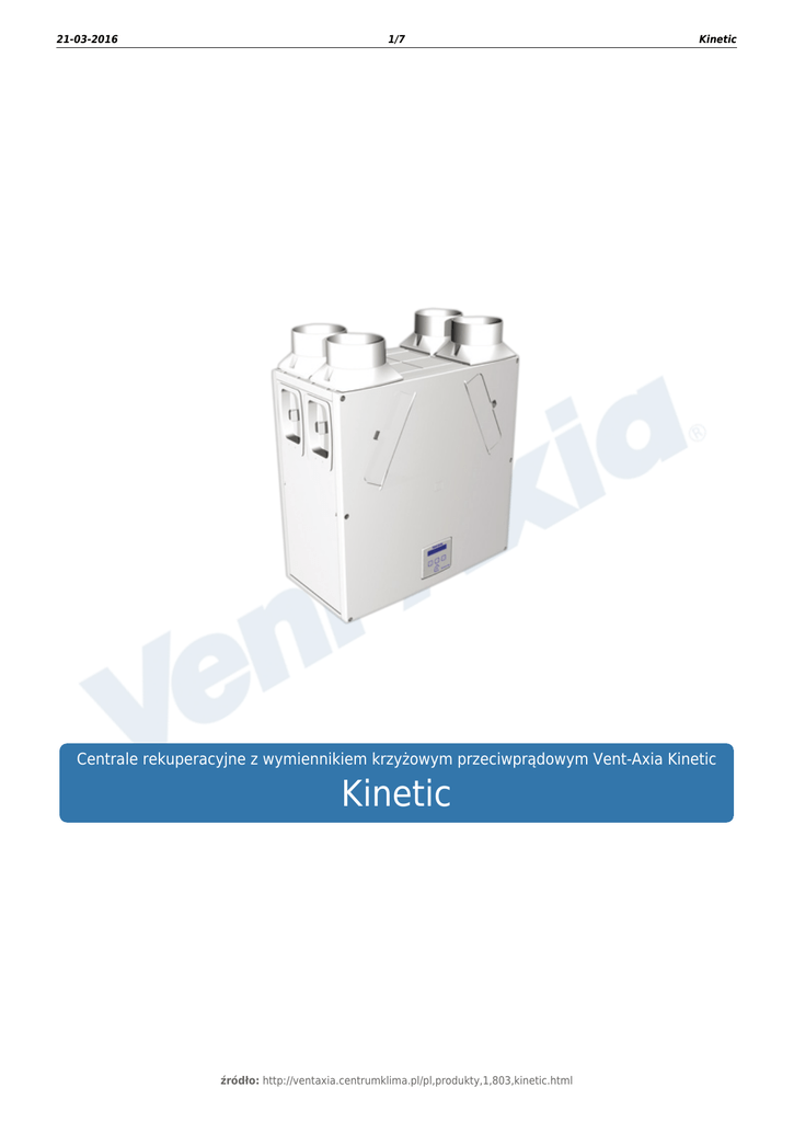 21-03-2016 1/7 Kinetic Centrale rekuperacyjne z wymiennikiem krzyżowym przeciwprądowym Vent-Axia Kinetic Kinetic źródło: http://ventaxia.centrumklima.pl/pl,produkty,1,803,kinetic.html 21-03-2016 2/7 Kinetic Opis Łatwa instalacja Modele Kinetic można montować pionowo, nadają się także do montażu na ścianie lub w szafce kuchennej. Przy montażu w miejscu nieogrzewanym należy zaizolować przewody. Przewody można podłączyć do urządzenia poziomo, pionowo lub na obydwa sposoby naraz. Minimalna głębokość wewnętrzna szafki kuchennej: Modele V i B - 290 mm. Modele CW - 300 mm. Modele V i B Instalacja prawo- lub lewostronna. Urządzenie posiada króćce rury w kierunku na zewnątrz po stronie prawej. Można je prosto odwrócić na miejscu instalacji zdejmując panel sterowania, obracając urządzenie o 180 stopni i ponownie zakładając panel sterowania. Króćce poziome i pionowe: Kombinacja różnych opcji końcówek umożliwia instalację w ciasnych miejscach. Jeśli konieczne jest podłączenie pionowe i poziome na jednym wylocie/wlocie, można zamówić dodatkowe końcówki. Odpływ skroplin można wyjmować od tyłu lub od spodu urządzenia. Korzystając z dostarczonego osprzętu przyłącze do skroplin wyjmuje się na zewnątrz urządzenia i można je wykonać po zakończeniu instalacji. Okap kuchenny Okap kuchenny Kinetic został zaprojektowany tak by pasował do otworu 600 mm powyżej płyty kuchenki. Teleskopowy okap obejmuje dwa płaskie metalowe wymienne filtry tłuszczowe, energooszczędne żarówki i jest dostępny w wykończeniu białym lub ze szczotkowanego aluminium. Okap posiada zintegrowaną przepustnicę przeciwpożarową zgodną z BRE Digest 398 i jest podłączony do urządzenia odzysku ciepła poprzez kanał ze stali ocynkowanej z możliwością dostępu w celu czyszczenia. Po otwarciu okapu, urządzenie do mechanicznej wentylacji i odzysku ciepła przechodzi w tryb zwiększonego przepływu a obejście letnie otwiera się, nie pozwalając na przedostanie się produktów ubocznych gotowania do zespołu wymiennika ciepła. Jako dodatkowe zabezpieczenie, kanał posiada także odcinający bezpiecznik termiczny który wyłącza centralę rekuperacyjną w razie wystąpienia w kanale wentylacyjnym nadmiernej temperatury. Okapu kuchennego nie można przestawić bezpośrednio na miejscu, konieczne jest zamówienie wersji lewo- lub praworęcznej. źródło: http://ventaxia.centrumklima.pl/pl,produkty,1,803,kinetic.html 21-03-2016 3/7 Funkcje i zalety Funkcje i zalety: • wymiennik krzyżowy przeciwprądowy - odzysk do 92%, • wydajność: 250 m³/h, • automatyka sterowania wliczona w cenę, • nisko-energetyczne silniki prądu stałego EC/DC, • łatwa wymiana filtrów bez konieczności zdejmowania panelu przedniego, • możliwość zmiany kierunku otworów przyłączeniowych: wersja pionowa/pozioma, • zdolność do podłączenia BMS, • niska waga (modele Kinetic V i B - 15 kg), • modele V i B pasują do standardowej szafki kuchennej o wymiarach: szerokość 600 mm, głębokość 290 mm, • regulowany opóźnieniowy włącznik/wyłącznik czasowy. źródło: http://ventaxia.centrumklima.pl/pl,produkty,1,803,kinetic.html Kinetic 21-03-2016 4/7 Kinetic Dane techniczne Przepływ powietrza Maks. wydajność, FID, 290 m³/h niski 20% normalny 30% boost 50% maks. 100% Poziom hałasu (@ 3m) 20 dB(A) (normalny), 36 dB(A) (boost) Zasilanie 220-240 V / 50Hz Zużycie energii 150 W (max.) Rurka odprowadzenia skroplin 22 mm Temperatura pracy -10°C ... +45°C Temperatura powietrza -10°C ... +45°C Wilgotność pracy 0% ... 95% RH Wydajność SAP Appendix Q Określona moc wentylatora (W/l/s) Sprawność cieplna % K+1 0.72 92% K+2 0.74 91% K+3 0.81 90% K+4 0.93 88% K+5 1.07 87% Wydajność Prędkość wentylatorów można dowolnie regulować w pełnym zakresie ich wydajności źródło: http://ventaxia.centrumklima.pl/pl,produkty,1,803,kinetic.html 21-03-2016 5/7 źródło: http://ventaxia.centrumklima.pl/pl,produkty,1,803,kinetic.html Kinetic 21-03-2016 6/7 Kinetic Charakterystyka akustyczna Przepływ, l/s Tryb testowy 10 20 30 40 50 Pasmo oktawowe, Hz, dB SWL 63 125 250 500 SPL dB(A) 1000 2000 4000 8000 at 3m Nawiew 47.8 40.2 38.0 31.1 28.2 22.1 23.6 30.9 21.4 Wyciąg 47.0 38.7 36.0 29.9 25.0 22.4 23.3 30.8 20.6 Ciśn. akust. 43.6 36.2 37.4 30.9 na wyjściu 27.4 23.3 24.2 31.4 18.6 Nawiew 54.0 46.6 50.2 44.5 44.4 38.3 28.8 31.9 31.2 Wyciąg 46.8 40.5 34.6 34.2 34.6 25.9 23.7 30.3 22.9 Ciśn. akust. 45.9 39.9 40.6 35.7 na wyjściu 33.5 28.4 25.3 31.2 21.3 Nawiew 58.1 54.5 57.6 52.2 51.7 47.6 38.6 35.8 38.5 Wyciąg 47.6 46.2 38.7 41.3 42.8 33.9 26.4 30.5 28.4 Ciśn. akust. 45.2 42.4 48.2 40.8 na wyjściu 37.7 35.2 30.0 31.1 25.2 Nawiew 65.2 58.4 62.3 58.0 56.5 52.5 44.1 41.4 43.6 Wyciąg 53.5 53.0 44.0 47.7 48.1 39.7 31.5 31.5 33.5 Ciśn. akust. 50.9 47.6 47.4 48.1 na wyjściu 42.5 40.8 36.3 34.4 29.3 Nawiew 66.4 63.2 66.3 62.5 61.7 57.4 50.0 47.8 48.3 Wyciąg 64.2 55.2 48.0 50.9 52.1 52.1 35.9 35.0 37.2 Ciśn. akust. 55.0 51.0 51.3 51.6 na wyjściu 46.9 46.0 42.0 38.3 33.2 Badanie przeprowadzono zgodnie z BS848. Ciśnienie akustyczne na wyjściu podano sferycznie, nawiew i wywiew podano półsferycznie. źródło: http://ventaxia.centrumklima.pl/pl,produkty,1,803,kinetic.html 21-03-2016 7/7 Kinetic Wymiary/Waga Minimalny prześwit między spodem urządzenia a blatem płyty grzejnej musi wynosić: - Dla gazowej: 750 mm - Dla elektrycznej: 650 mm Waga: Kinetic V&B: 15 kg Kinetic Cooker Hood: 27 kg Kinetic V&B K L 550 mm M 550 mm G 285 mm ØJ 140 mm H 125 mm 360 mm Kinetic Cooker Hood A 590 mm B 710 mm C 295 mm D 316 mm E 598 mm F 90 mm G 140 mm źródło: http://ventaxia.centrumklima.pl/pl,produkty,1,803,kinetic.html H 360 mm ØJ 125 mm
