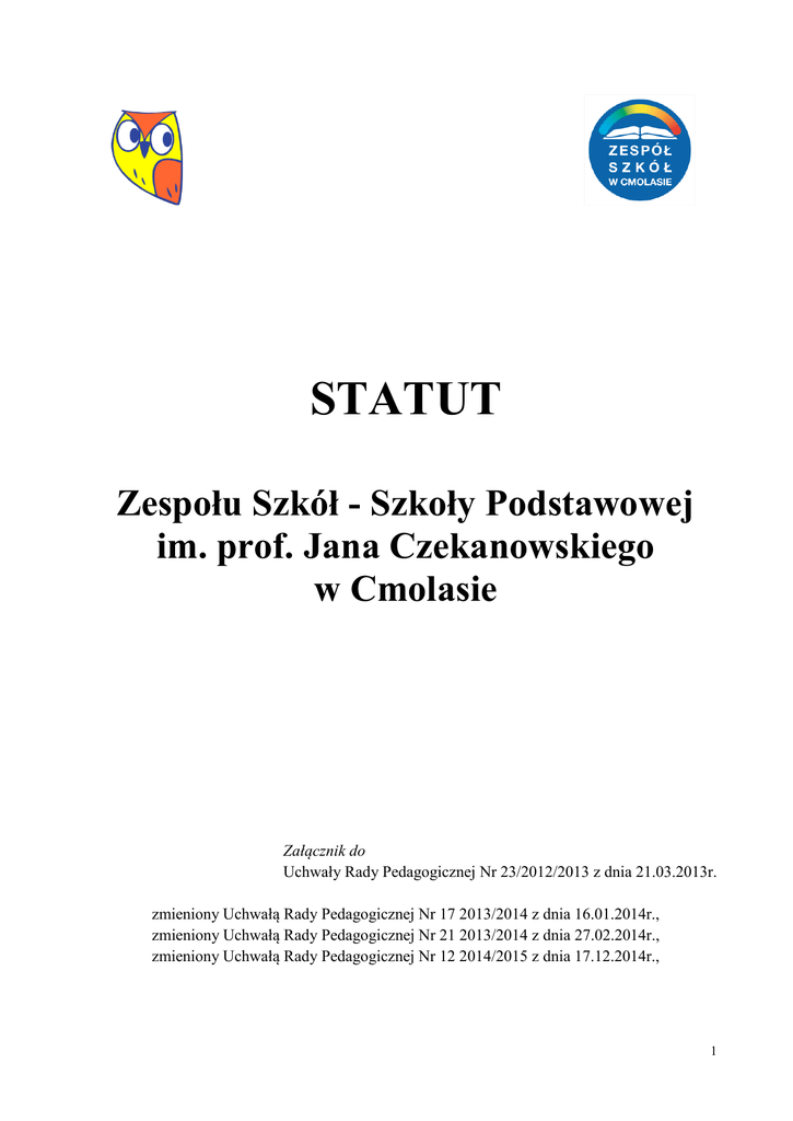 STATUT Zespołu Szkół - Szkoły Podstawowej im. prof. Jana