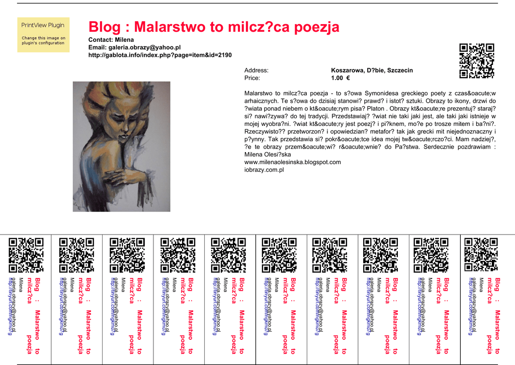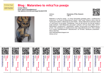 Blog : Malarstwo to milcz?ca poezja Contact: Milena Email: [email protected] http://gablota.info/index.php?page=item&id=2190 Address: Price: Koszarowa, D?bie, Szczecin 1.00 € Malarstwo to milcz?ca poezja - to s?owa Symonidesa greckiego poety z czasów arhaicznych. Te s?owa do dzisiaj stanowi? prawd? i istot? sztuki. Obrazy to ikony, drzwi do ?wiata ponad niebem o którym pisa? Platon . Obrazy które prezentuj? staraj? si? nawi?zywa? do tej tradycji. Przedstawiaj? ?wiat nie taki jaki jest, ale taki jaki istnieje w mojej wyobra?ni. ?wiat który jest poezj? i pi?knem, mo?e po trosze mitem i ba?ni?. Rzeczywisto?? przetworzon? i opowiedzian? metafor? tak jak grecki mit niejednoznaczny i p?ynny. Tak przedstawia si? pokrótce idea mojej twórczo?ci. Mam nadziej?, ?e te obrazy przemówi? równie? do Pa?stwa. Serdecznie pozdrawiam : Milena Olesi?ska www.milenaolesinska.blogspot.com iobrazy.com.pl Blog : milcz?ca Malarstwo to poezja Malarstwo to poezja Milena [email protected] http://tinyurl.com/ngkmu7g Blog : milcz?ca Malarstwo to poezja Milena [email protected] http://tinyurl.com/ngkmu7g Blog : milcz?ca Malarstwo to poezja Milena [email protected] http://tinyurl.com/ngkmu7g Blog : milcz?ca Malarstwo to poezja Milena [email protected] http://tinyurl.com/ngkmu7g Blog : milcz?ca Malarstwo to poezja Milena [email protected] http://tinyurl.com/ngkmu7g Blog : milcz?ca Malarstwo to poezja Milena [email protected] http://tinyurl.com/ngkmu7g Blog : milcz?ca Malarstwo to poezja Milena [email protected] http://tinyurl.com/ngkmu7g Blog : milcz?ca Malarstwo to poezja Milena [email protected] http://tinyurl.com/ngkmu7g Blog : milcz?ca Malarstwo to poezja Milena [email protected] http://tinyurl.com/ngkmu7g Blog : milcz?ca Milena [email protected] http://tinyurl.com/ngkmu7g Powered by TCPDF (www.tcpdf.org)