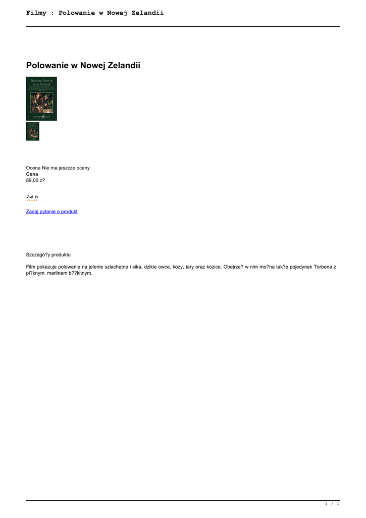 Filmy : Polowanie w Nowej Zelandii Polowanie w Nowej Zelandii Ocena Nie ma jeszcze oceny Cena 89,00 z? Zadaj pytanie o produkt Szczegó?y produktu Film pokazuje polowanie na jelenie szlachetne i sika, dzikie owce, kozy, tary oraz kozice. Obejrze? w nim mo?na tak?e pojedynek Torbena z pi?knym marlinem b??kitnym. 1 / 1 Powered by TCPDF (www.tcpdf.org)