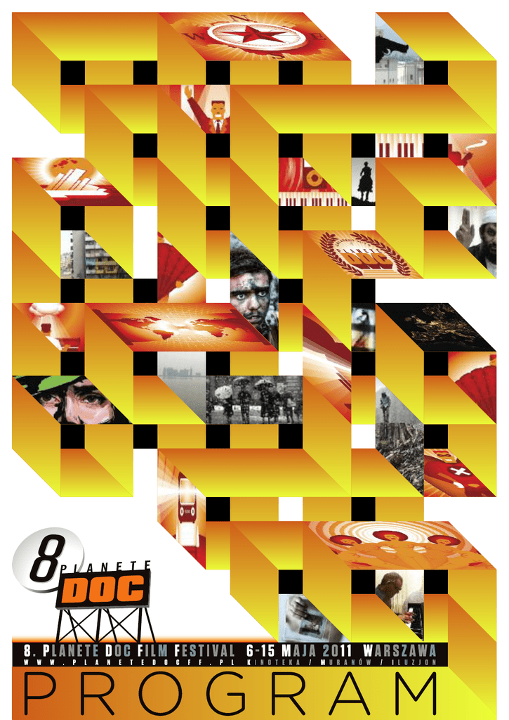 INFORMACJE PRAKTYCZNE Info KINA FESTIWALOWE: KINOTEKA MURANÓW IlUzjON | PAłAc KuLTury I NAuKI, Pl. Defilad 1 (wejście od Al. Jerozolimskich), Warszawa. Tel: 22 551 70 70 | uL. GEN. ANDErSA 1, Warszawa. Dojazd: Stacja Metro ratusz Arsenał. Tel: 22 635 30 78 | BIBLIOTEKA NArODOWA, Al. Niepodległości 213, sala im. Stefana Dembego, wejście A, Warszawa. Dojazd: przystanek Biblioteka Narodowa, Stacja Metro Pole Mokotowskie. Tel: 22 646 12 60 JĘZyKI Filmy zagraniczne prezentowane są z polskimi napisami. Większość filmów prezentowana jest również z angielskimi napisami. W kinie Iluzjon prezentowane są filmy jedynie z polskimi napisami. INFOrMAcJA STrONA INTErNETOWA FESTIWALu WWW.PLANETEDOcFF.PL – APLIKAcJA MÓJ KALENDArZ. Polecamy i zachęcamy do korzystania ze strony www.planetedocff.pl. Znajdziecie tam najświeższe informacje o festiwalu oraz możecie skorzystać z nowej aplikacji MÓj KAlENDARz. Dzięki niej możecie oceniać filmy, rekomendować, tworzyć swój program projekcji na dany dzień, filtrować projekcje według miejsca i czasu projekcji, sekcji filmowej czy konkursu. cENTrALNE BIurO INFOrMAcJI (cBI) >>> znajduje się w Kinotece, w holu kasowym. Przyjmuje interesantów na godzinę przed pierwszym seansem i do godz. : 00 każdego dnia festiwalu. BILETy BILETy NA OTWArcIE I ZAMKNIĘcIE FESTIWALu: Bilety na otwarcie festiwalu, które odbędzie się 5 maja, godz. 19.30 w Teatrze Dramatycznym, PKiN, dostępne są w kasach teatru oraz na Ticket Online Cena: 30 zł i 20 zł. W programie po raz pierwszy w Polsce „live documenatary” w reż. Sama Greena (nominacja do Oscara w 004 roku), p. t. UTOPIA W CZTERECH ODSŁONACH. Więcej o projekcie: www.utopiainfourmovements.com BILETy NA WIEcZÓr WrĘcZANIA NAGrÓD OrAZ IMPrEZĘ W cAFE KuLTurALNA P. T. cHArLES BrONSON GrA Cena: 15 zł. Bilety w kasach Kinoteki. Wieczór składa się z dwóch części: >>> Kinoteka, 14 maja, godz. 19: 00: wręczenie nagród zwycięzcom festiwalu oraz film niespodzianka. >>> Cafe Kulturalna 14 maja, 22: 00: performance CHARLES BRONSON GRA z udziałem twórców i bohatera filmu Ranczo Teksas oraz zabawa taneczna. Grają: Niedźwiedź z ekipą najlepszych warszawskich muzyków. BILETy NA SEANSE FILMOWE >>> Przedsprzedaż rusza 29 kwietnia i potrwa do 5 maja. Cena biletów w trakcie przedsprzedaży – 12 zł, przy zakupie 10 biletów. 100 pierwszych osób, które kupi w Kinotece 10 lub więcej biletów otrzyma katalog gratis! >>> Cena biletów normalnych – 15 zł. >>> Pokazy filmu Jaskinia zapomnianych snów w reż. W. Herzoga w 3D – 19 zł. UWAGA! W każdym z kin sprzedawane są bilety wyłącznie na seanse, grane w danym kinie. Bilety sprzedawane w trakcie przedsprzedaży dotyczą tylko jednego kina festiwalowego. Zakupione w różnych kinach nie łączą się. Rezerwacji można dokonywać telefonicznie, w odpowiednich kinach, wyłącznie w trakcie festiwalu (6-15 maja). Odbiór rezerwacji godzinę przed seansem. Informujemy, że nie ma możliwości zwrotu zakupionych biletów. Miejsca na festiwalu są nienumerowane. DEBATy: Wstęp wolny w ramach wolnych miejsc. Pierwszeństwo mają posiadacze biletów na seans filmowy połączony z debatą. WyKłADy MISTrZOWSKIE (MASTErcLASS), 9 MAJA i 11 MAJA: >>> Dla osób spoza branży filmowej bilety do nabycia w trakcie festiwalu, w Kinotece, w miarę wolnych miejsc. >>> Cena biletów – 15 zł. NAGrODA PuBLIcZNOścI: ZAcHĘcAMy DO GłOSOWANIA NA NAJLEPSZy WEDłuG PuBLIcZNOścI FILM 8. FESTIWALu PLANETE DOc. Kupon do głosowania znajduje się na odwrocie biletu. Aby zagłosować, wystarczy naderwać odpowiednią ocenę na skali 1 – 4 (1 – to najlepsza ocena, 4 – to najgorsza ocena), a po projekcji w dniach 6-14 maja wrzucić kupon do urny. Nagroda publiczności, ufundowana przez kanał dokumentalny PLANETE, zostanie wręczona na gali zamknięcia, w dniu 14 maja. KONKurS NA rEcENZJĘ: PODZIEL SIĘ Z NAMI SWOIMI WrAżENIAMI I NAPISZ rEcENZJĘ JEDNEGO Z FILMÓW 8 FESTIWALu PLANETE DOc. Na autorów 10 najlepszych recenzji filmów, prezentowanych podczas festiwalu, czekają atrakcyjne nagrody. Do wygrania netbooki HP, filmy DVD, torby, koszulki i długopisy z latarkami. Wystarczy zarejestrować się w serwisie www.planetedocff.pl i w dniach 6-15 maja umieścić swoją recenzję w formularzu dostępnym po zalogowaniu się. Fundatorem nagród jest kanał dokumentalny PLANETE. 3 więcej na WWW.PLANETEDOcFF.PL WyDAWNIcTWA FESTIWALOWE: KATALOG FILMÓW, PrOGrAM PrOJEKcJI I GADżETy FESTIWALOWE. >>> Katalog festiwalu dostępny jest w kinach festiwalowych w cenie 10 zł. >>> PROGRAM PROjEKCjI jEST BEzPŁATNY. >>> Gadżety kupić można w trakcie festiwalu w Centralnym Biurze Informacji w Kinotece. Ilość gadżetów ograniczona! koszulka - 35 zł, torba - 35 zł. DVD >>> TYlKO w dniach 6-15 maja, w kinach festiwalowych, można kupić wydawnictwa DVD z serii OBlICzA oraz box z filmami dokumentalnymi Wernera Herzoga z 20% zniżką. Ilość dvd w tej ofercie ograniczona. >>> Więcej DVD filmów festiwalu kupisz na www.againstgravity.pl/sklep lub na facebook – AGAINST GRAVITY. GDZIE NAS ZNAJDZIESZ: W INTErNEcIE: >>> www.facebook.com/PlANETE-DOC-REVIEW/ >>> www.youtube.com/user/planetedocreview >>> www.againstgravity.pl >>> www.againstgravity.pl/sklep MAPKA OBIEKTÓW FESTIWALOWycH: 1 2 3 > Kinoteka Pałac Kultury i Nauki, Plac Defilad 1 (wejście od Al. Jerozolimskich) > Muranów ul. Gen. Andersa 1 Dojazd: Stacja Metro Ratusz Arsenał > Iluzjon Biblioteka Narodowa, Al. Niepodległości 213, sala im. Stefana Dembego, wejście A Dojazd: przystanek Biblioteka Narodowa, Stacja Metro Pole Mokotowskie 4 > 5 > 6 > 7 > Atlantic ul. Chmielna 33 Centrum Nauki Kopernik ul. Wybrzeże Kościuszkowskie 20 Teatr Dramatyczny Pałac Kultury i Nauki, Plac Defilad 1 Cafe Kulturalna Pałac Kultury i Nauki, Plac Defilad 1 Foyer Teatru Dramatycznego 4 WYDARZENIA SPECJALNE Special Events cZWArTEK 5 MAJA 2011 19:30 / Thursday May 5 | TEATr DrAMATycZNy | WIECZóR OTWARCIA FESTIWALu: