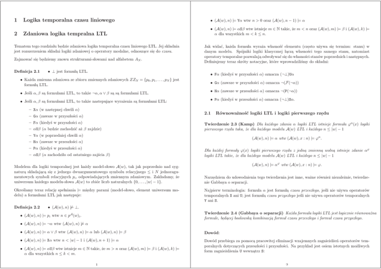 Twierdzenie 2.4 (Gabbaya o separacji) Każda formula logiki LTL jest logicznie równoważna