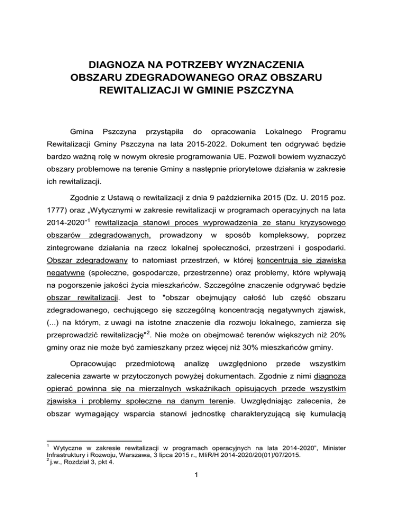 diagnoza na potrzeby wyznaczenia obszaru zdegradowanego oraz